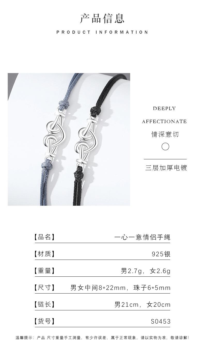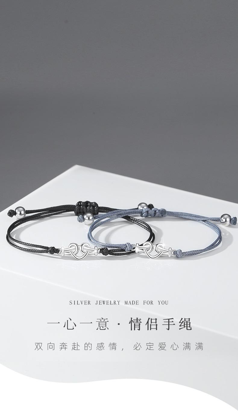 Pulsera de pareja Love S925 para hombre y mujer, diseño de nicho, lujo ligero, pulsera de flecha a través del corazón, pulsera de doble nudo ins