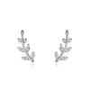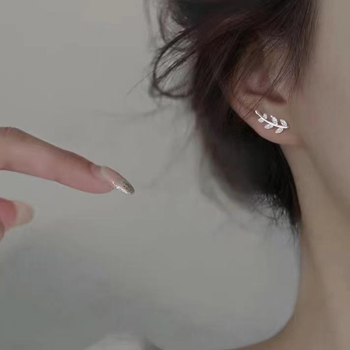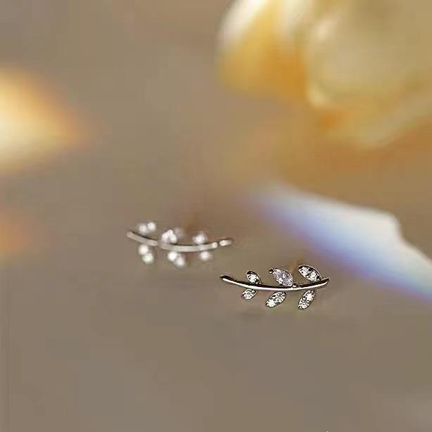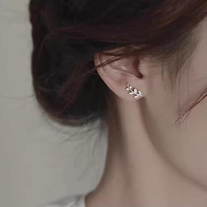 Aretes Aguja de Plata Femeninos Aretes de Circonita de Hoja Aretes de Moda de Lujo Ligero Sentido del Diseño de Aretes de Hoja Ramas Pequeñas y Hojas Sentido Avanzado Orejas