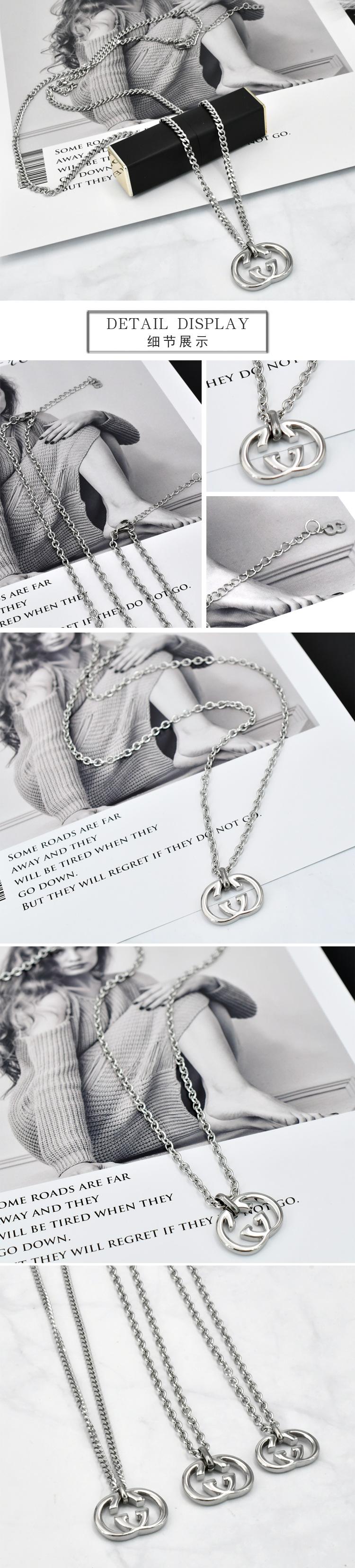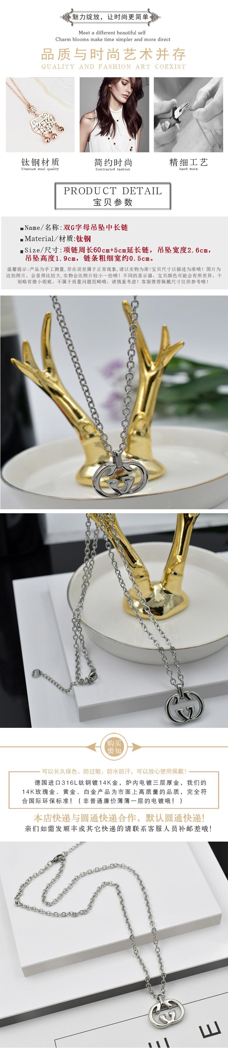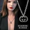 Collar de suéter con G generosa de moda europea y americana, colgante de doble G, hebilla mutua, collar largo de acero de titanio para parejas sociales de mujeres.