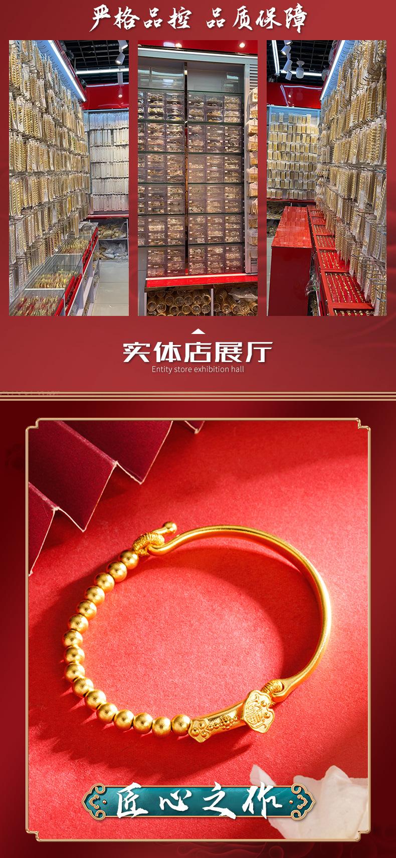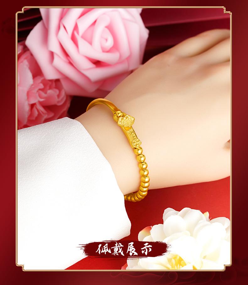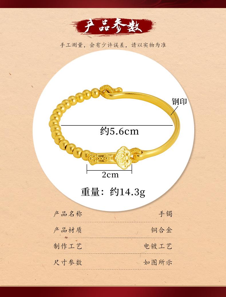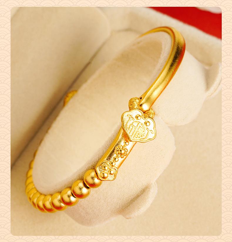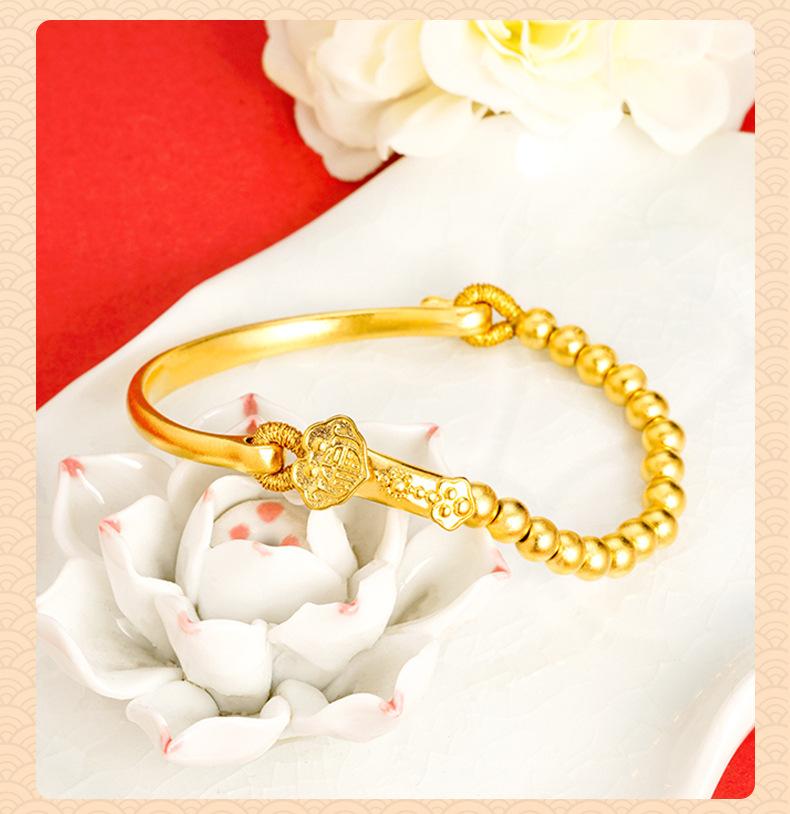 Pulsera de media cuenta de Ruyi de oro, joyería de estilo francés antiguo, pulsera de oro para mujer que no se desvanece durante mucho tiempo, suministro directo de fábrica, todo a juego