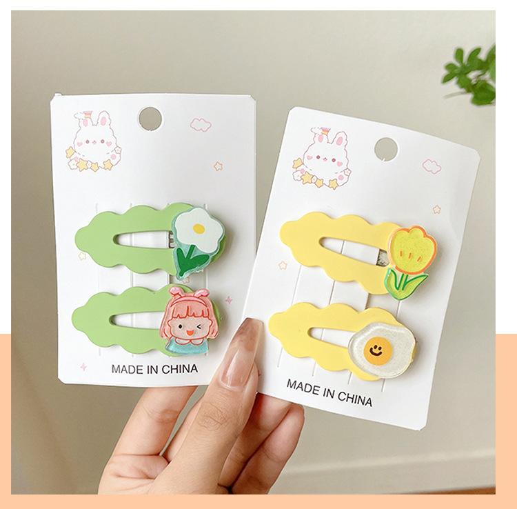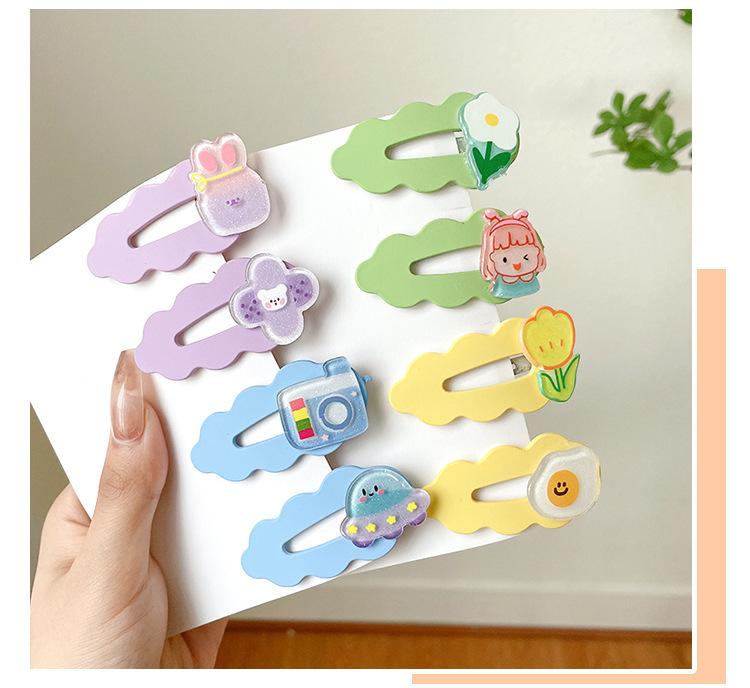 Horquilla grande con dibujos animados para niña, con flequillo frontal ondulado, pinza para el pelo rota, horquilla lateral para bebé