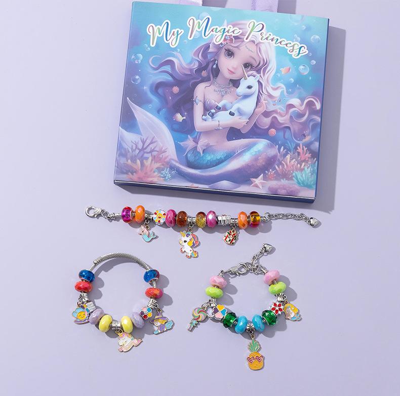 Pulsera infantil de la serie sirena, joyería artesanal, venta al por mayor, Amazon, el traje colorido de dibujos animados más vendido.