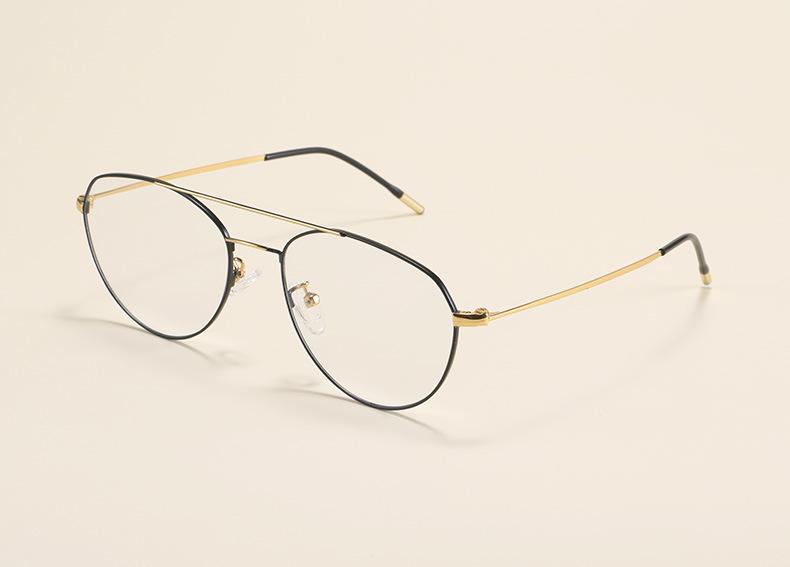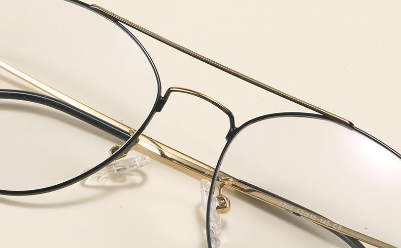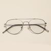 7705 Montura de gafas de aleación de metal retro para hombre y mujer, montura moderna de doble haz con forma de sapo, espejo plano y ligero de cara pequeña para miopía