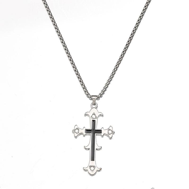 Collar con colgante de cruz de diamantes de ganchillo transfronterizo europeo y americano, simple, retro, que no se decolora, decoración a juego para hombres