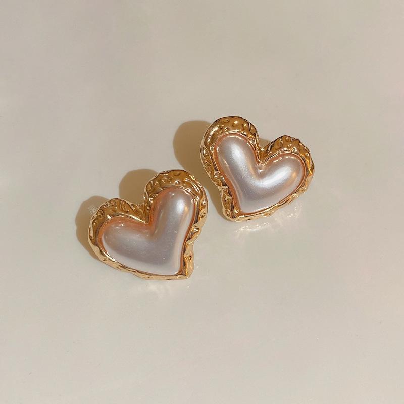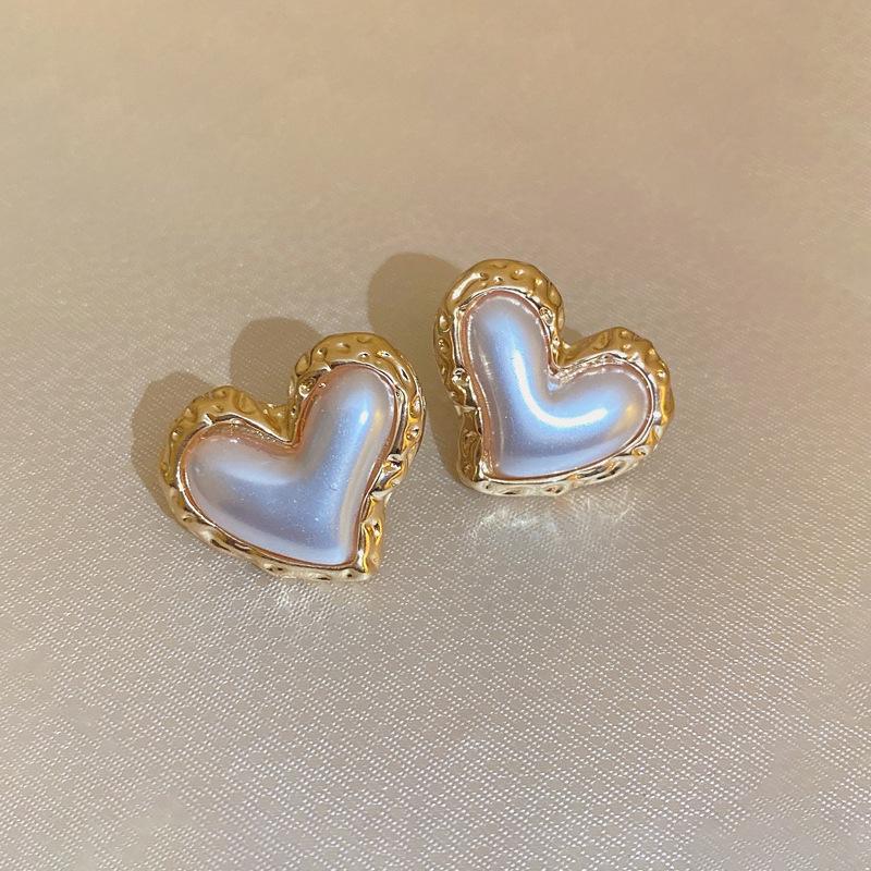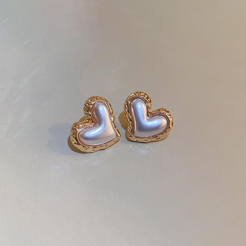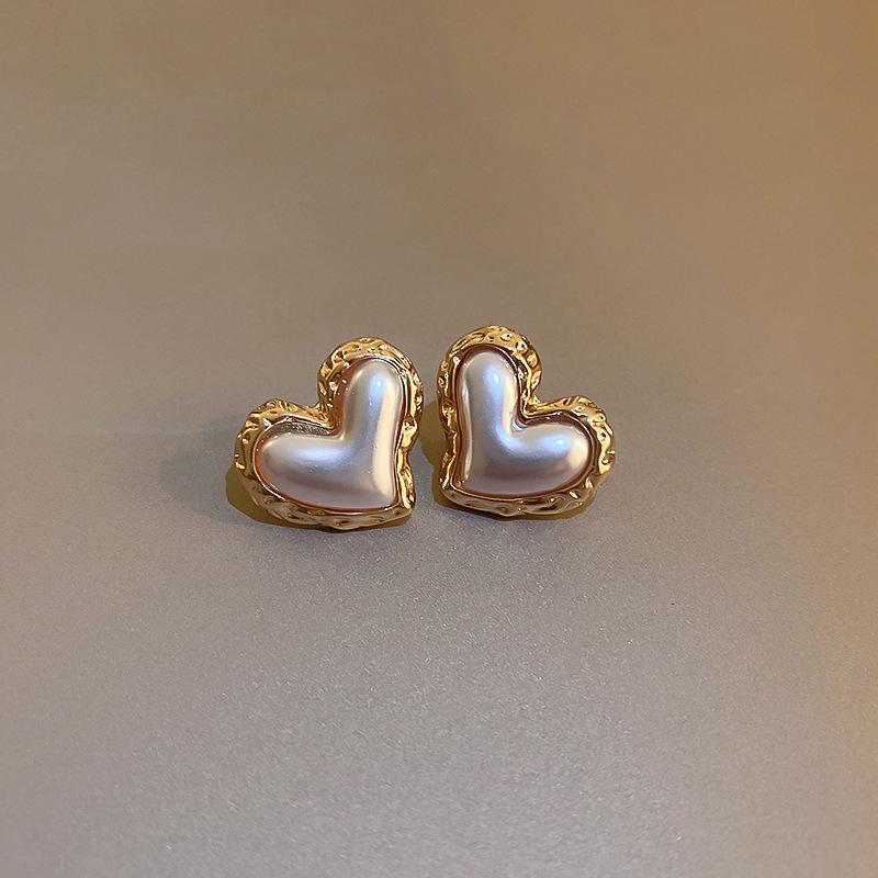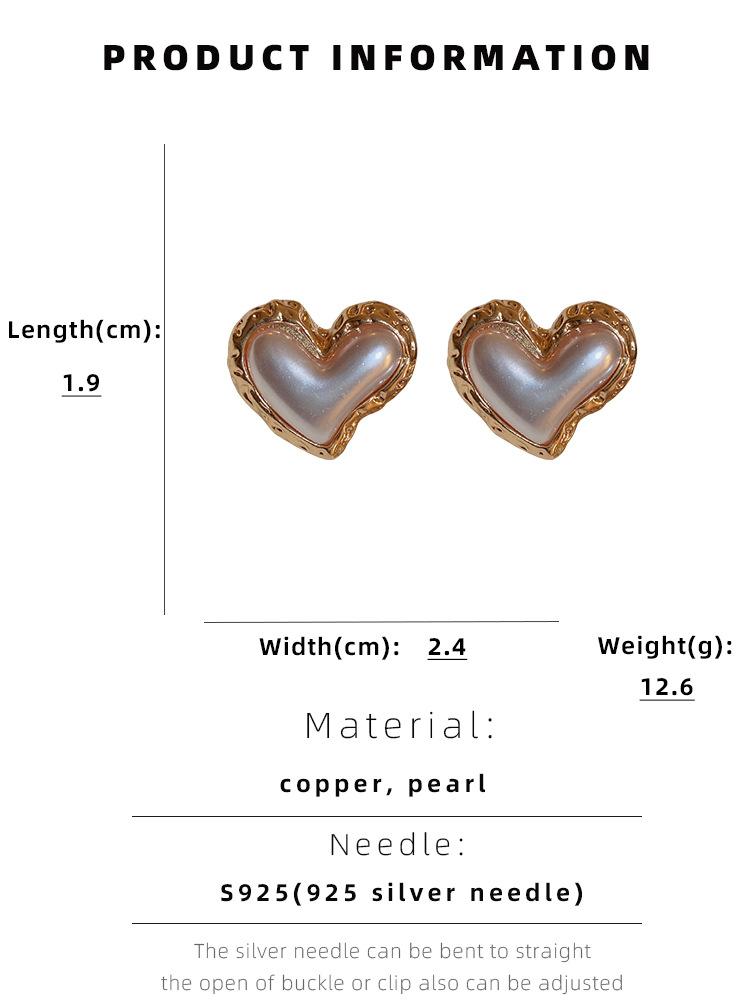 Silver Needle-White Pearl Love Stud Earrings