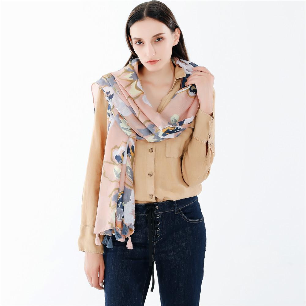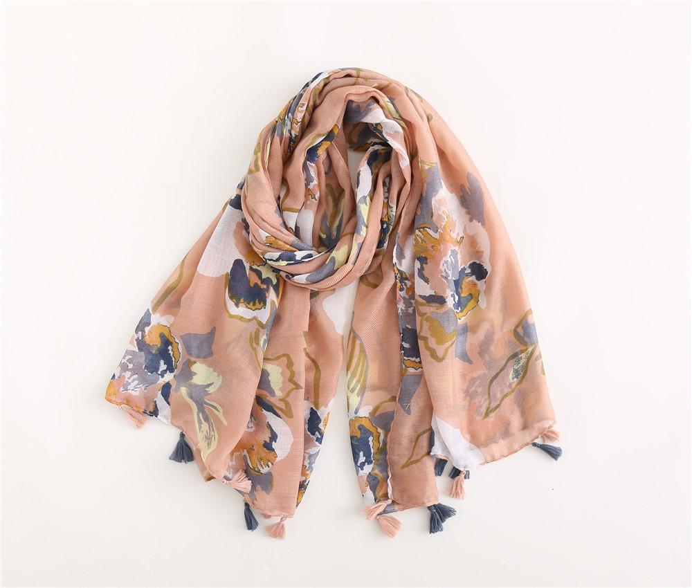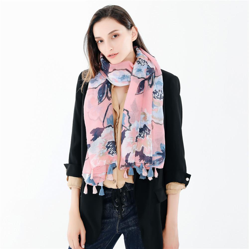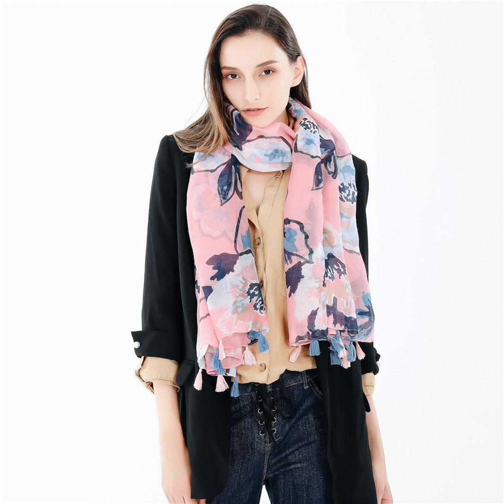 Gran oferta 2020, nueva moda, estilo europeo y americano, otoño e invierno, algodón, lino, borlas, cálido, estampado de flores, bufanda, chal