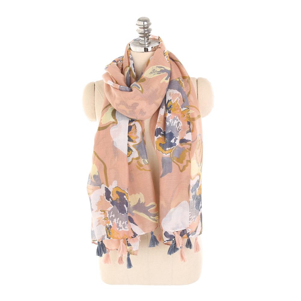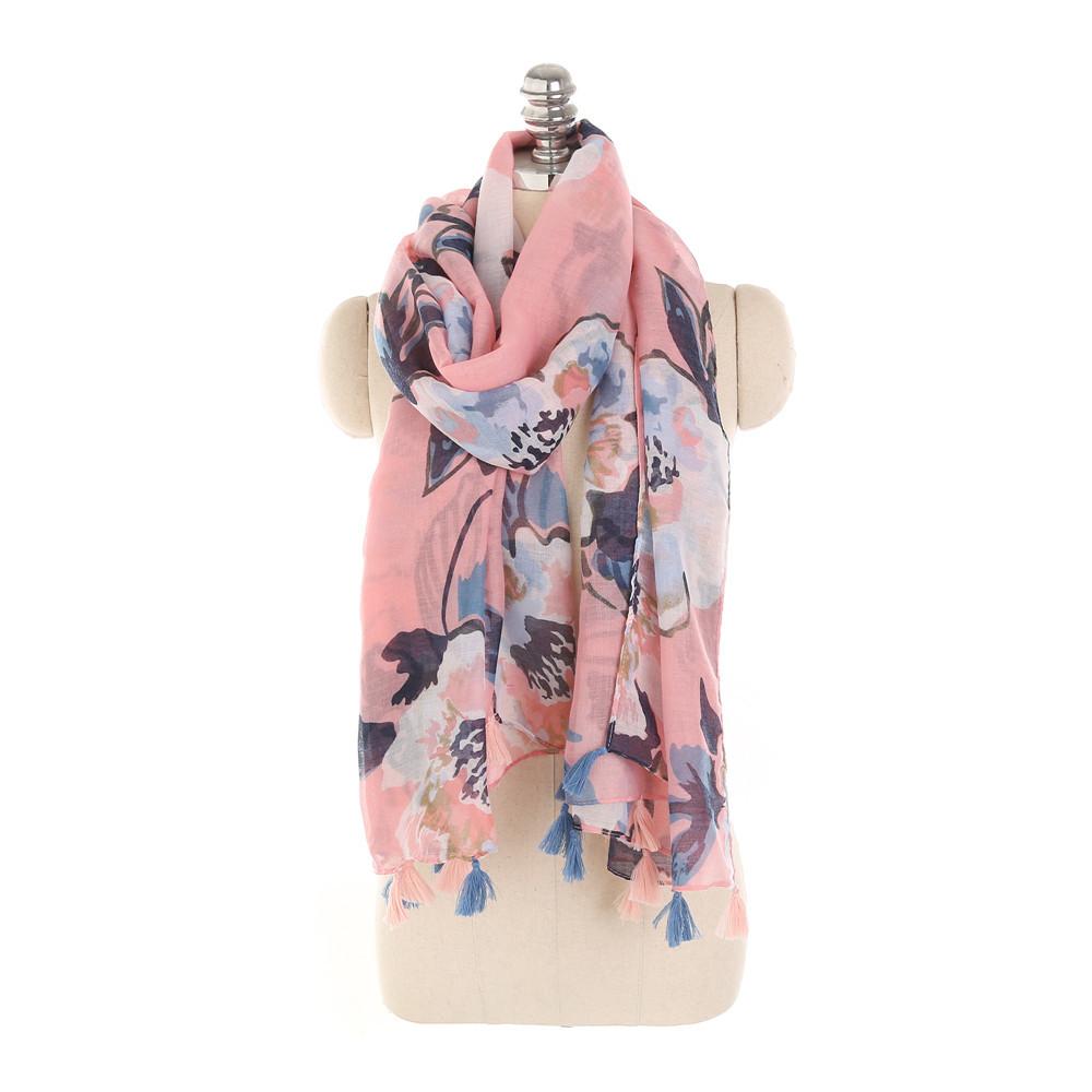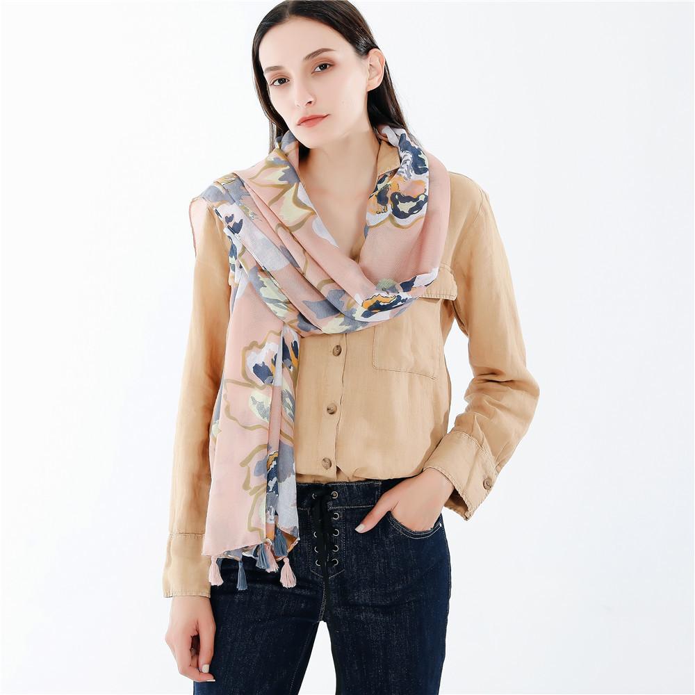 Gran oferta 2020, nueva moda, estilo europeo y americano, otoño e invierno, algodón, lino, borlas, cálido, estampado de flores, bufanda, chal