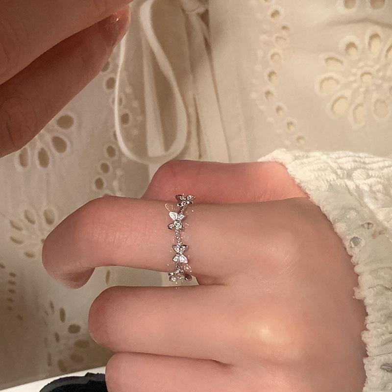 Anillo de Metal Mariposa Circón con Sentido del Diseño Nicho para Mujer Personalidad de Alta Gama Simple Combinable Elegante Anillo de Moda