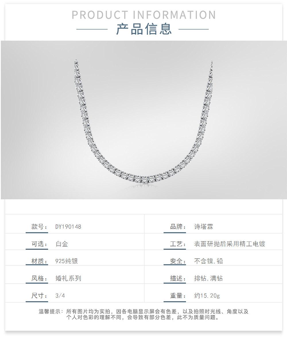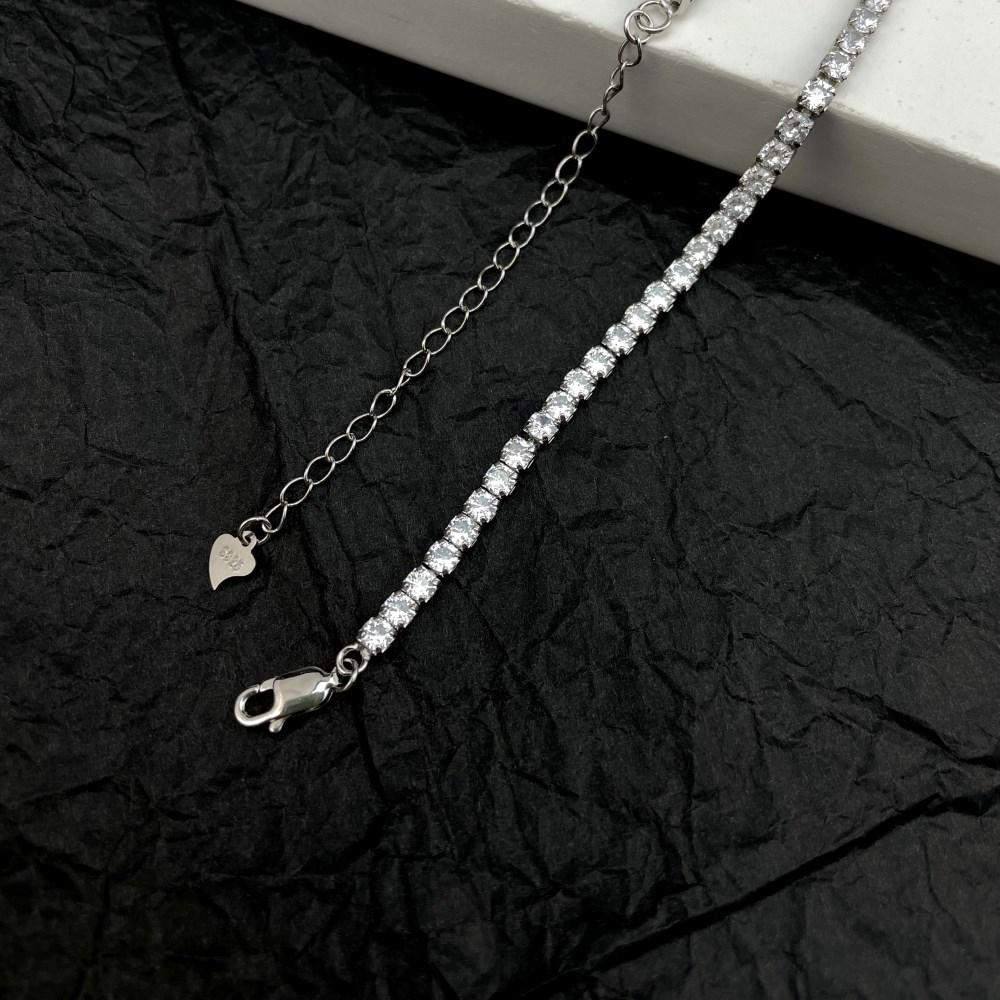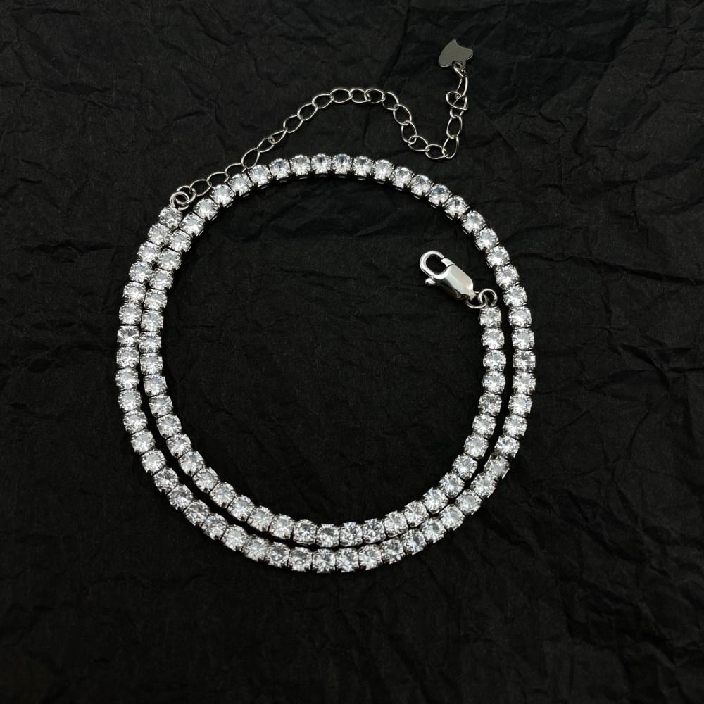 Collar Extensor de Cadena de Tenis Europea y Americana de Plata Esterlina 925 Hip Hop Diamante de una Sola Fila Circonio Completo Incrustado Circonita 5A Cadena de Cuello