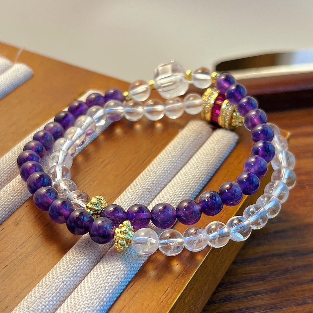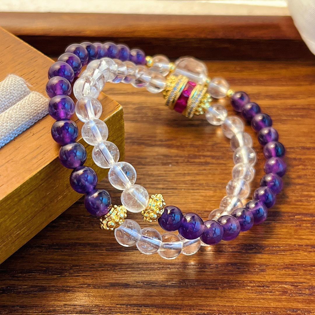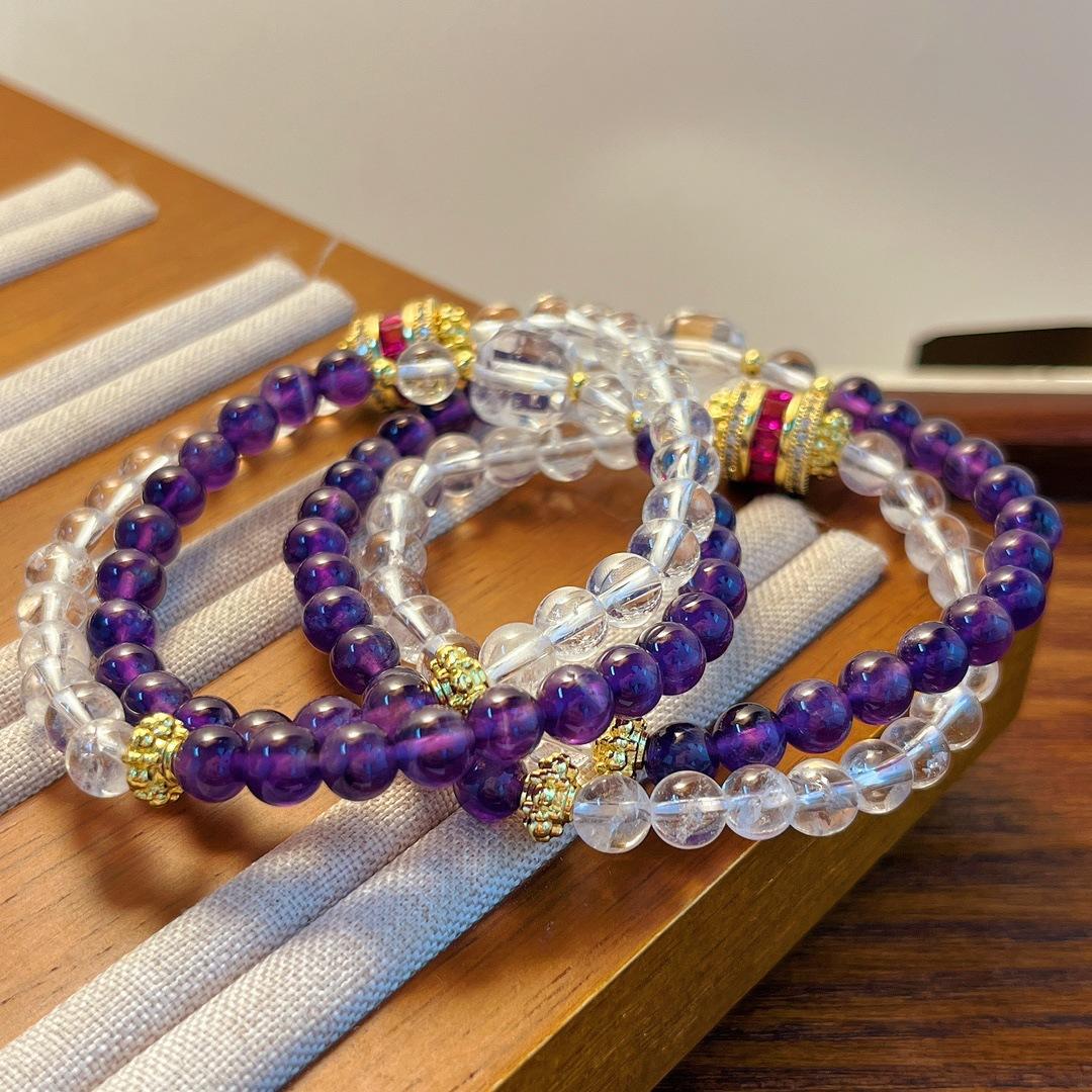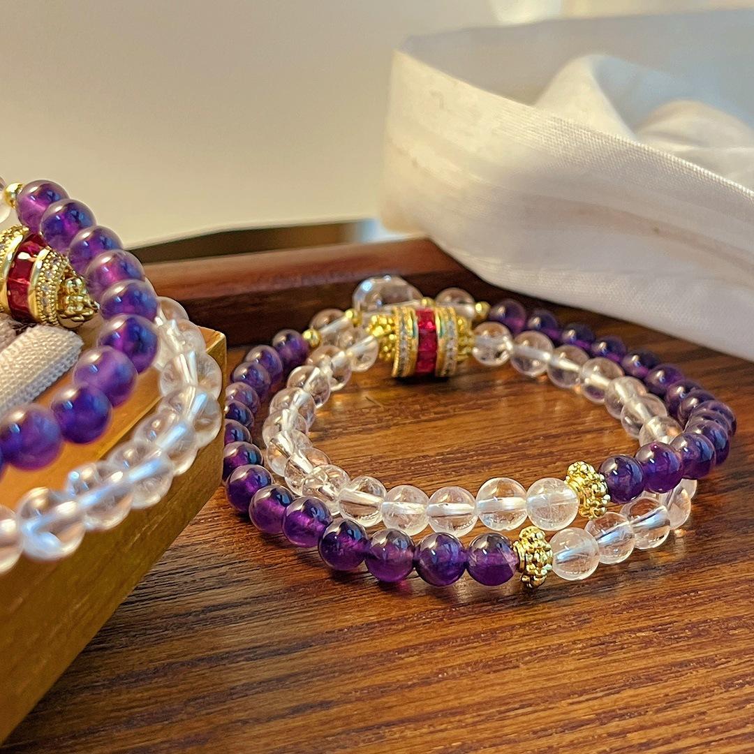 Pulsera de Amatista Natural Pulsera de Cristal Blanco Natural