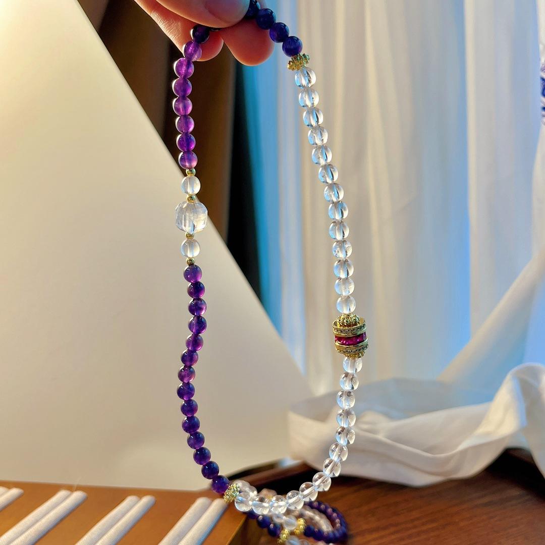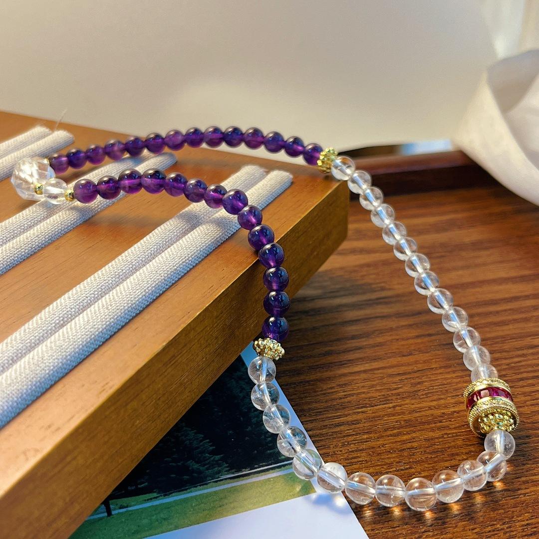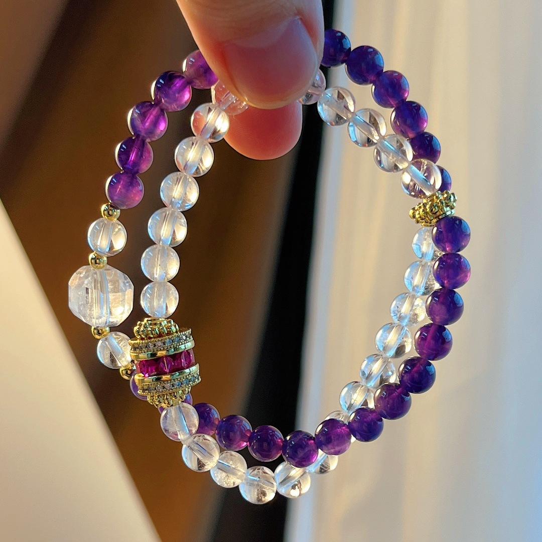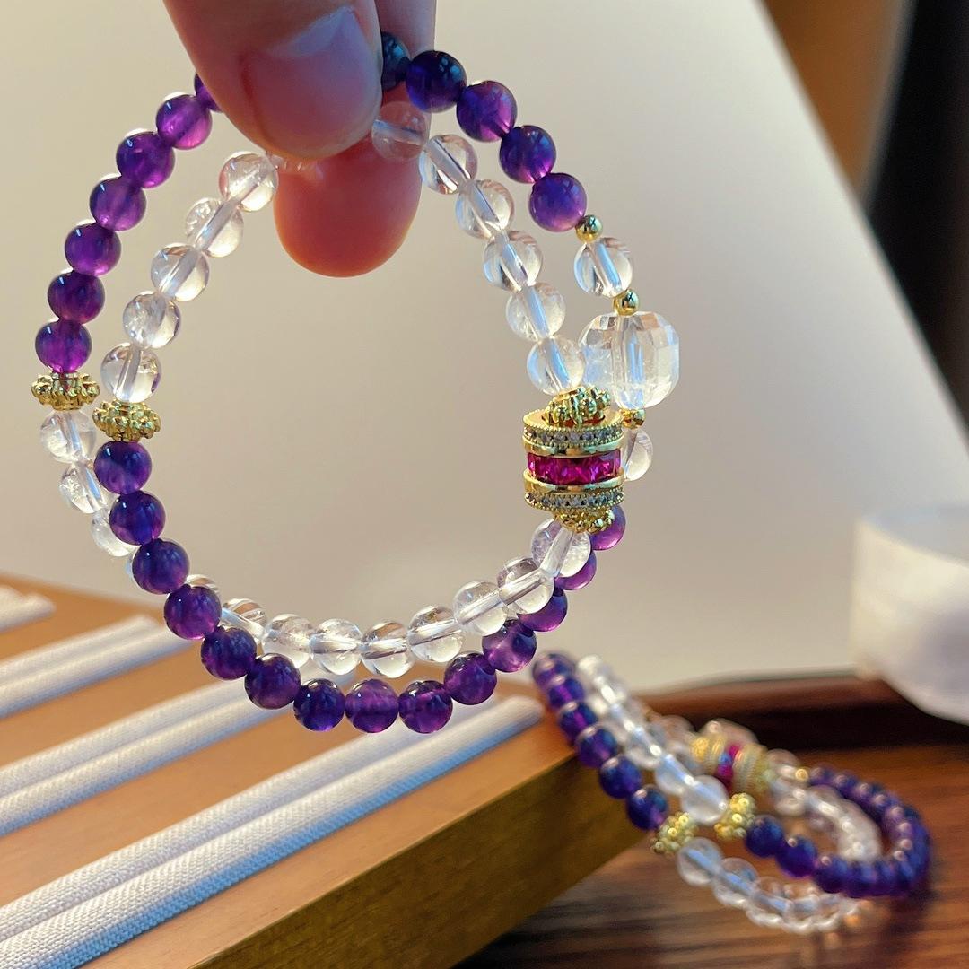 Pulsera de Amatista Natural Pulsera de Cristal Blanco Natural