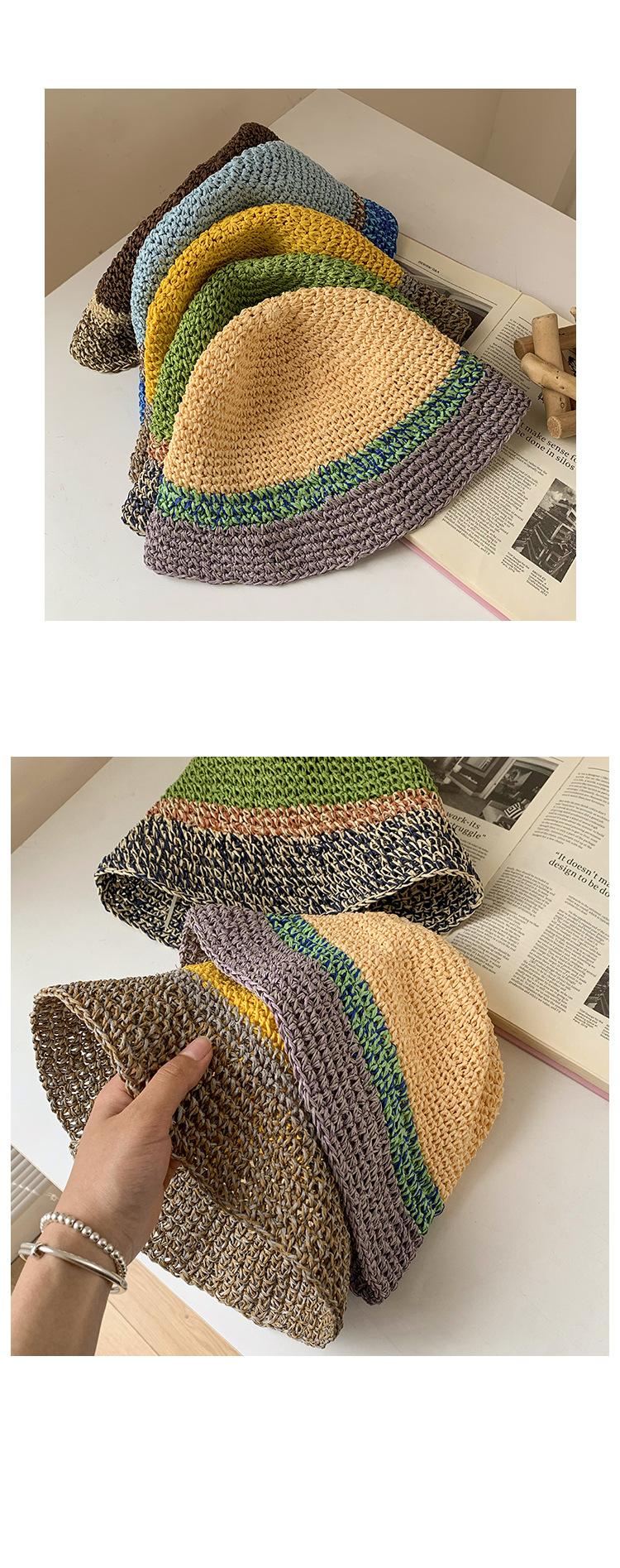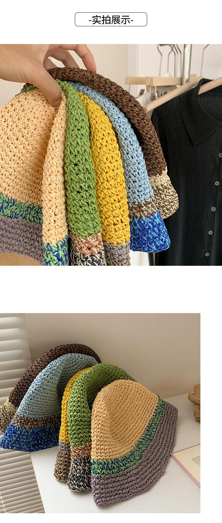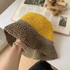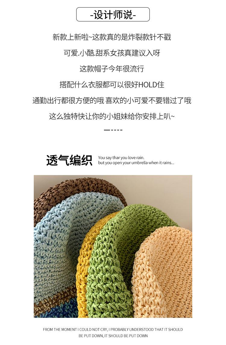 Sombrero de Paja a Juego de Colores para Niños Verano Estilo Japonés Transpirable Parasol Paja Tejida Sombrero Protector Solar para Rostro Brillante Pequeño Viaje Cubo Sombrero de Pescador Marea