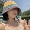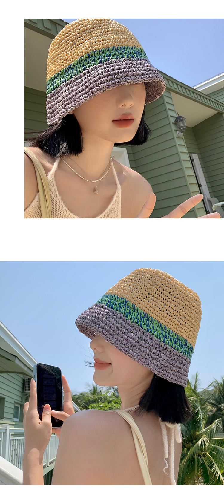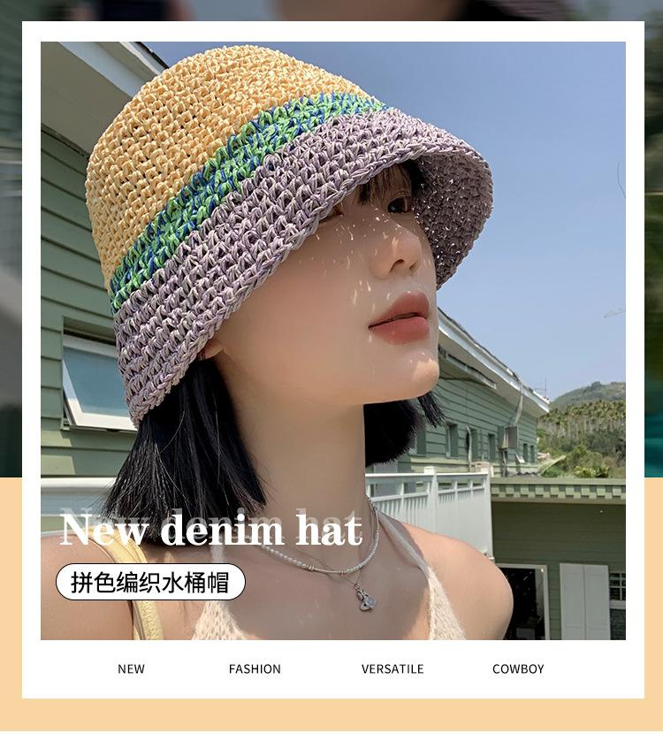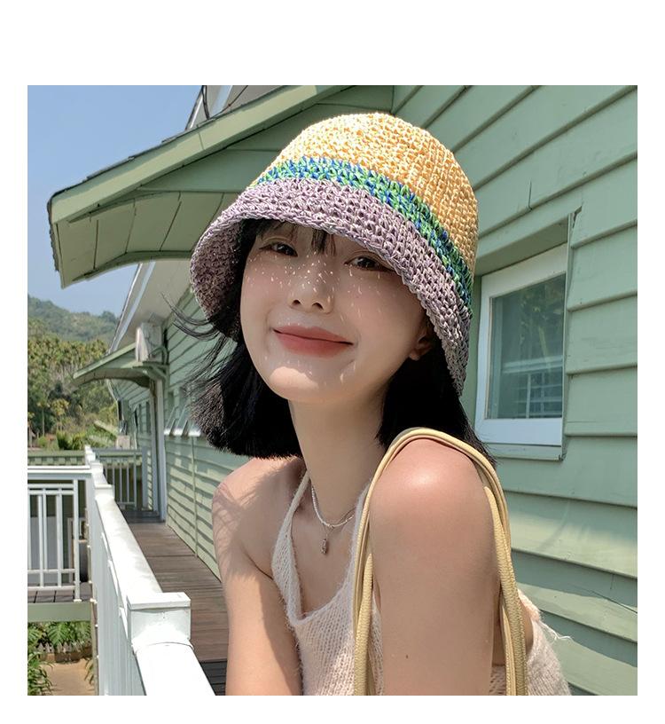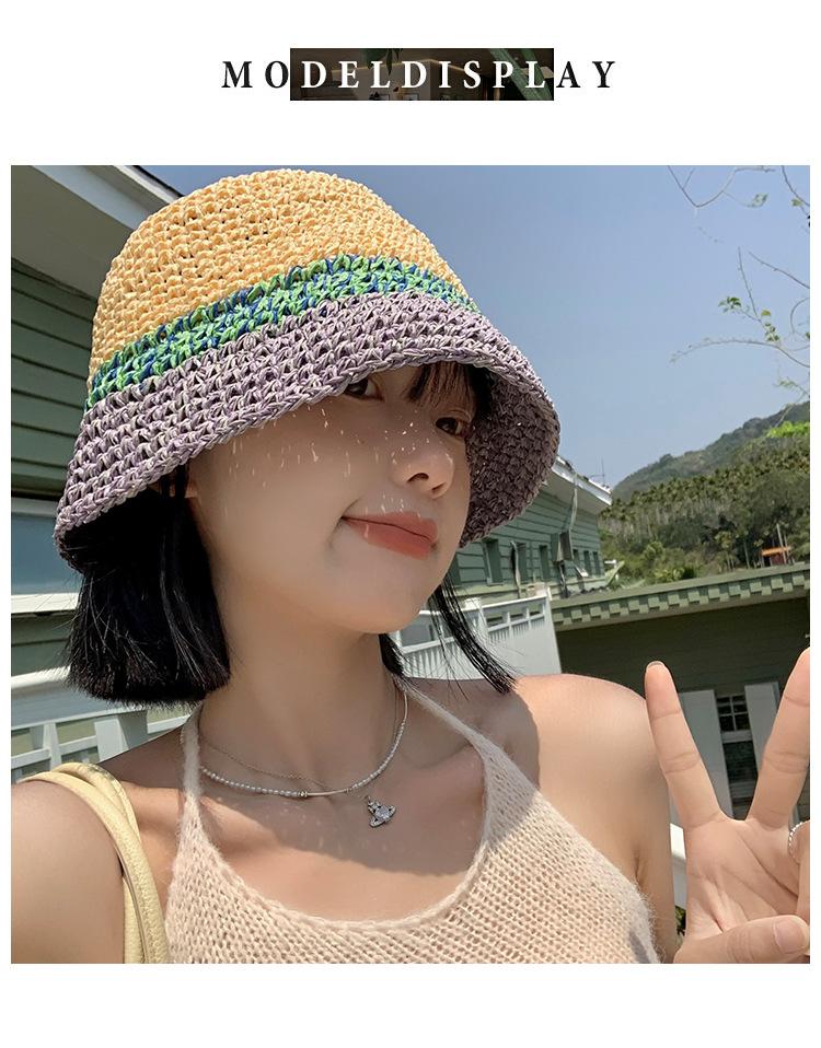 Sombrero de Paja a Juego de Colores para Niños Verano Estilo Japonés Transpirable Parasol Paja Tejida Sombrero Protector Solar para Rostro Brillante Pequeño Viaje Cubo Sombrero de Pescador Marea