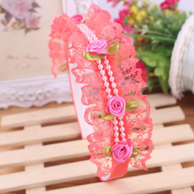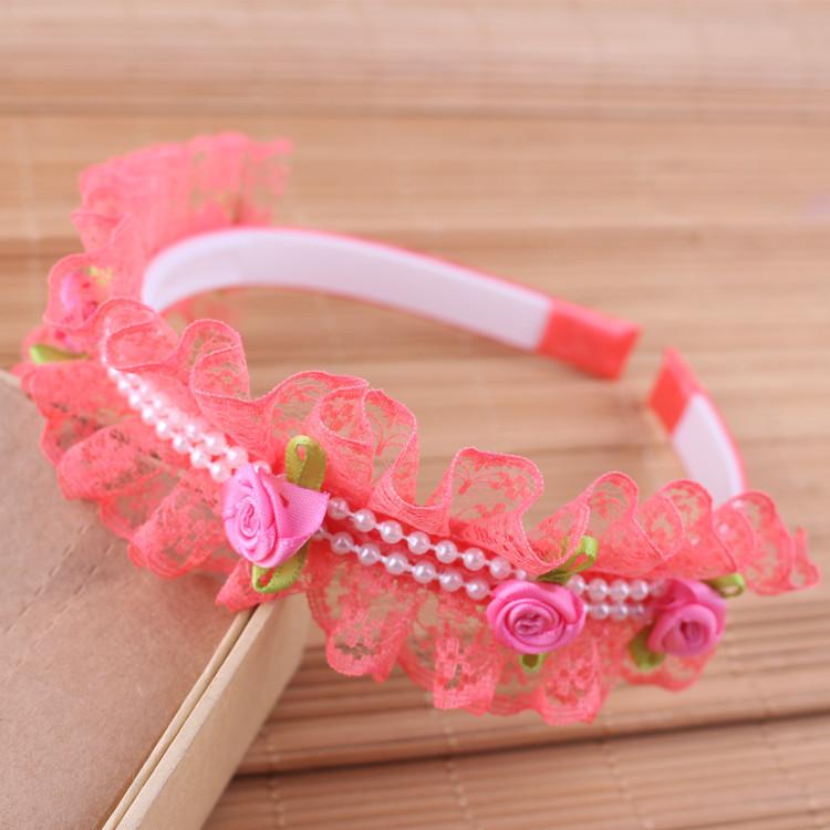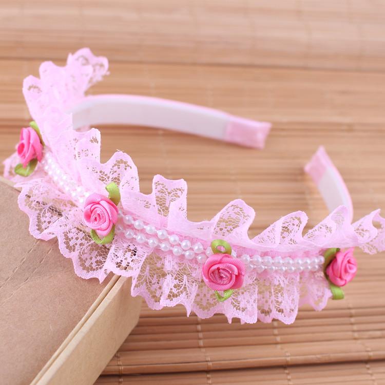 Diadema Coreana para Niños Guirnalda de Encaje Flor Rosa Diadema Tiara de Princesa Guirnalda Bohemia