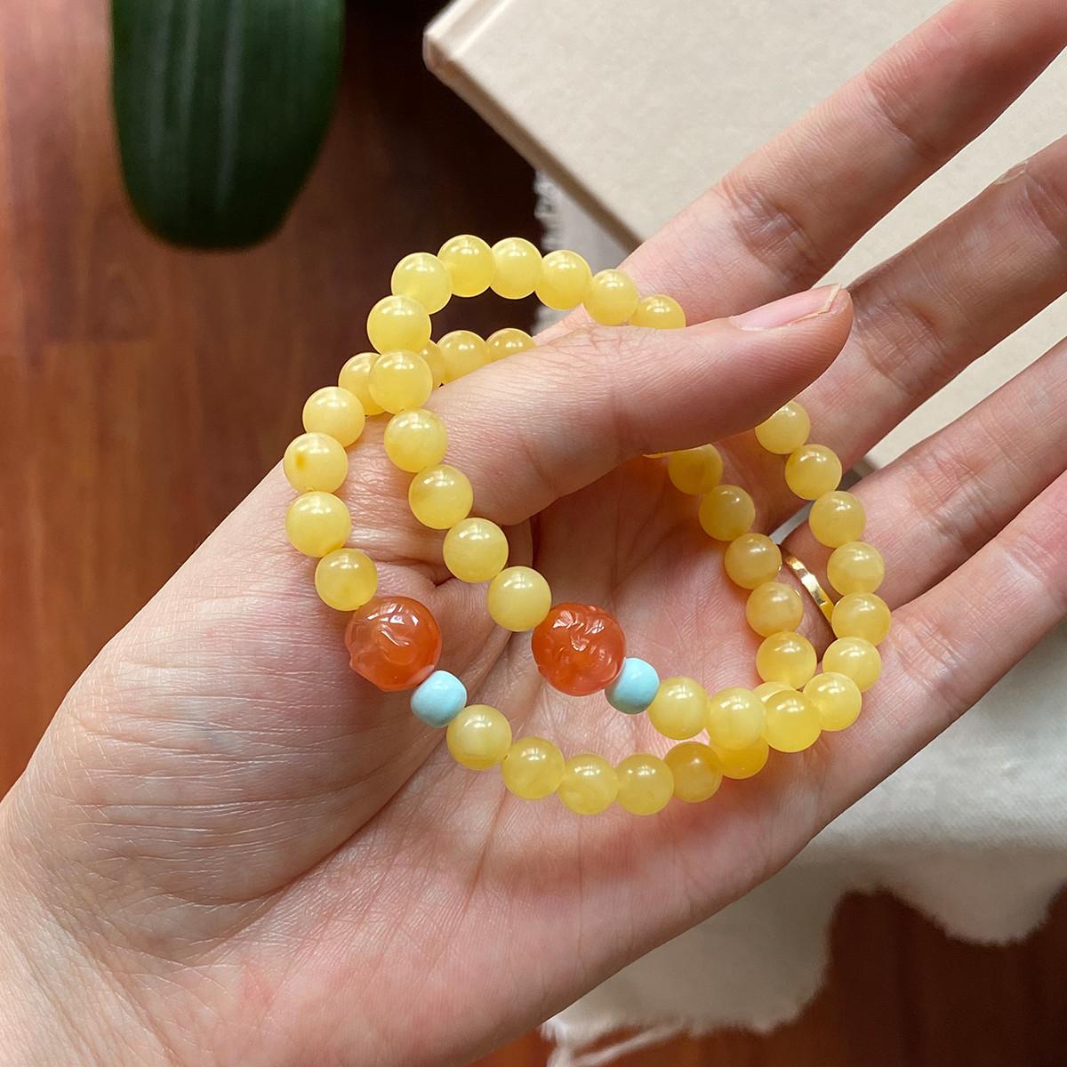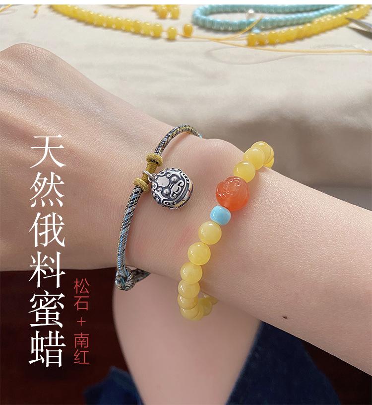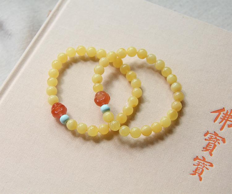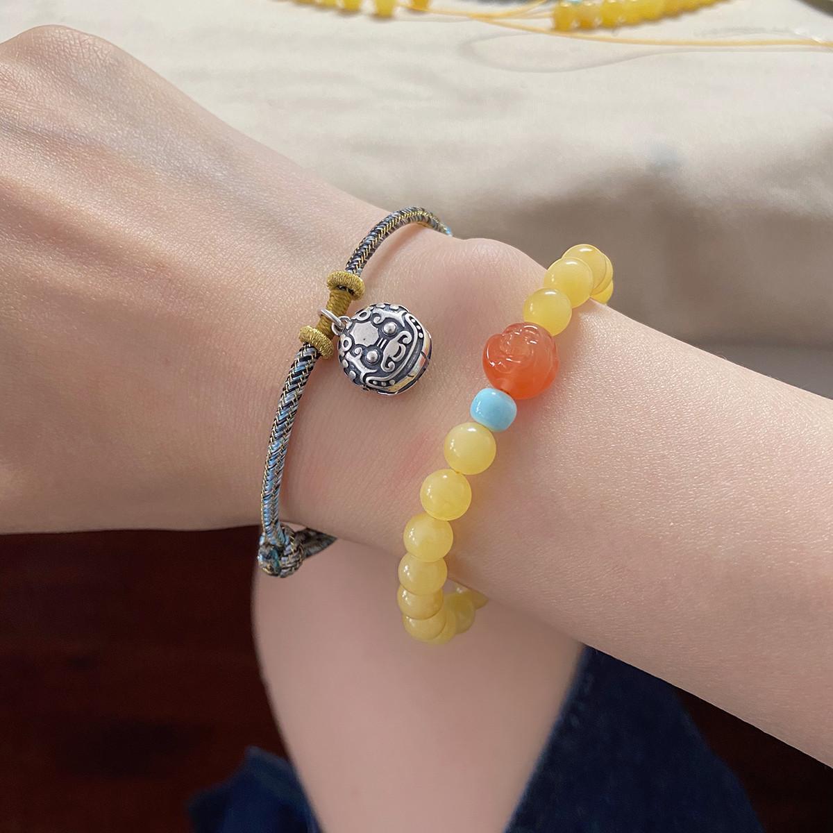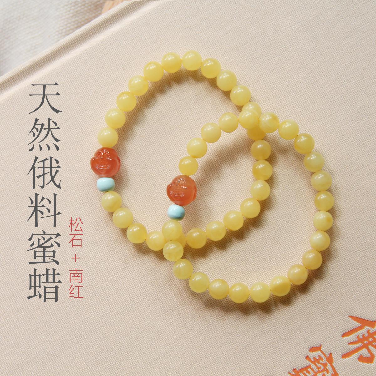 Pulsera de cuentas redondas de cera de abejas de un solo círculo, pulsera DIY con cabeza de Buda turquesa roja del sur, joyería fresca para hombres y mujeres
