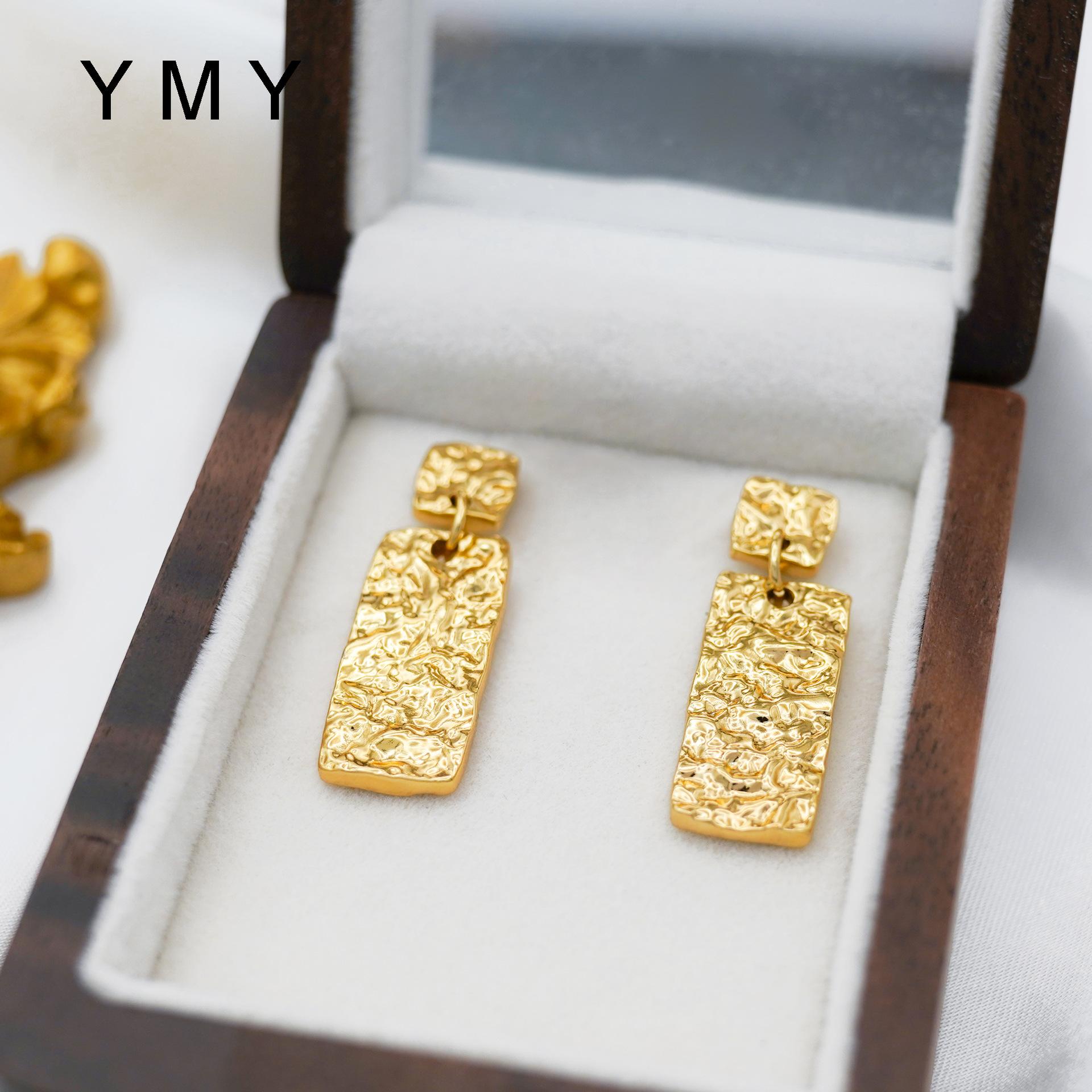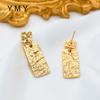 Pendientes de moda transfronterizos de estilo europeo y americano, nuevos pendientes de acero inoxidable chapados en oro de 18 quilates con diseño de textura plisada cuadrada.