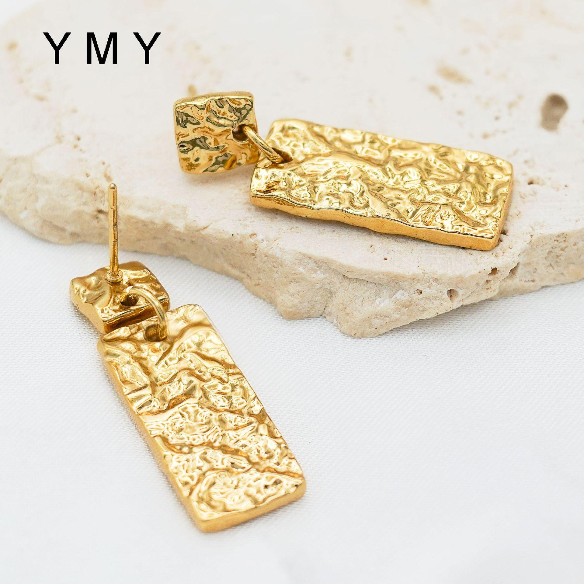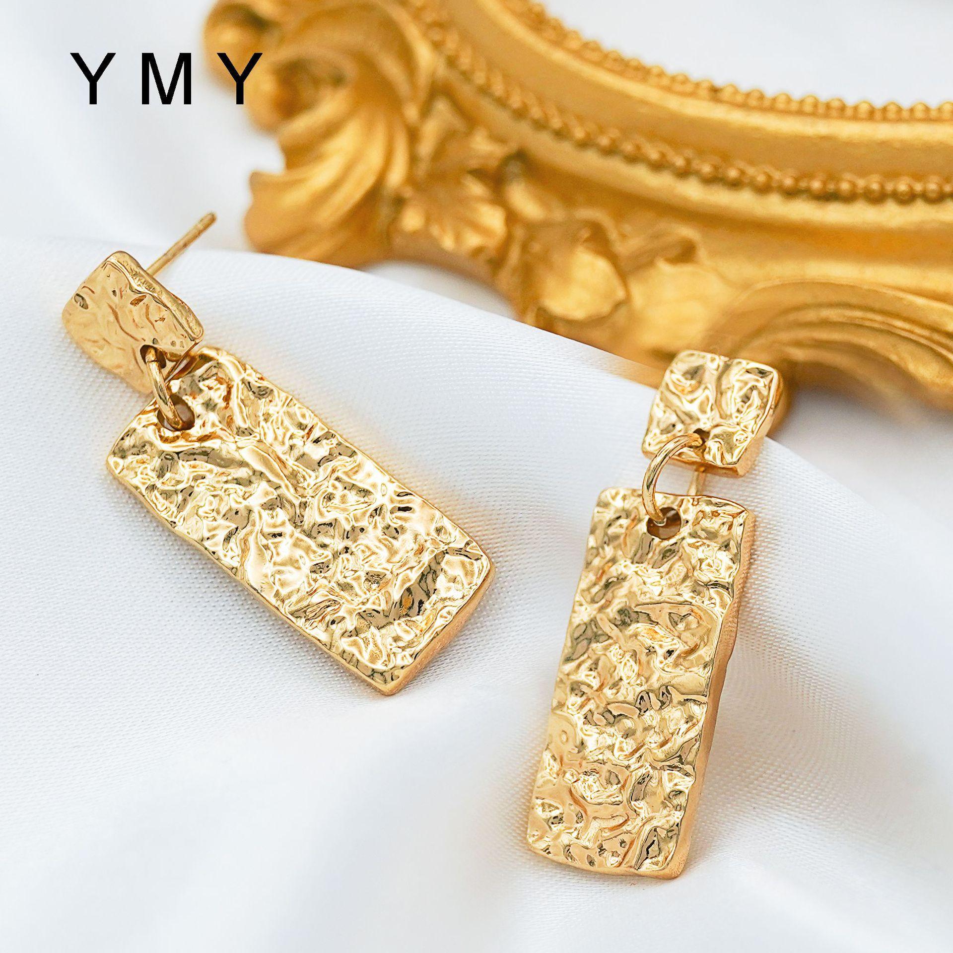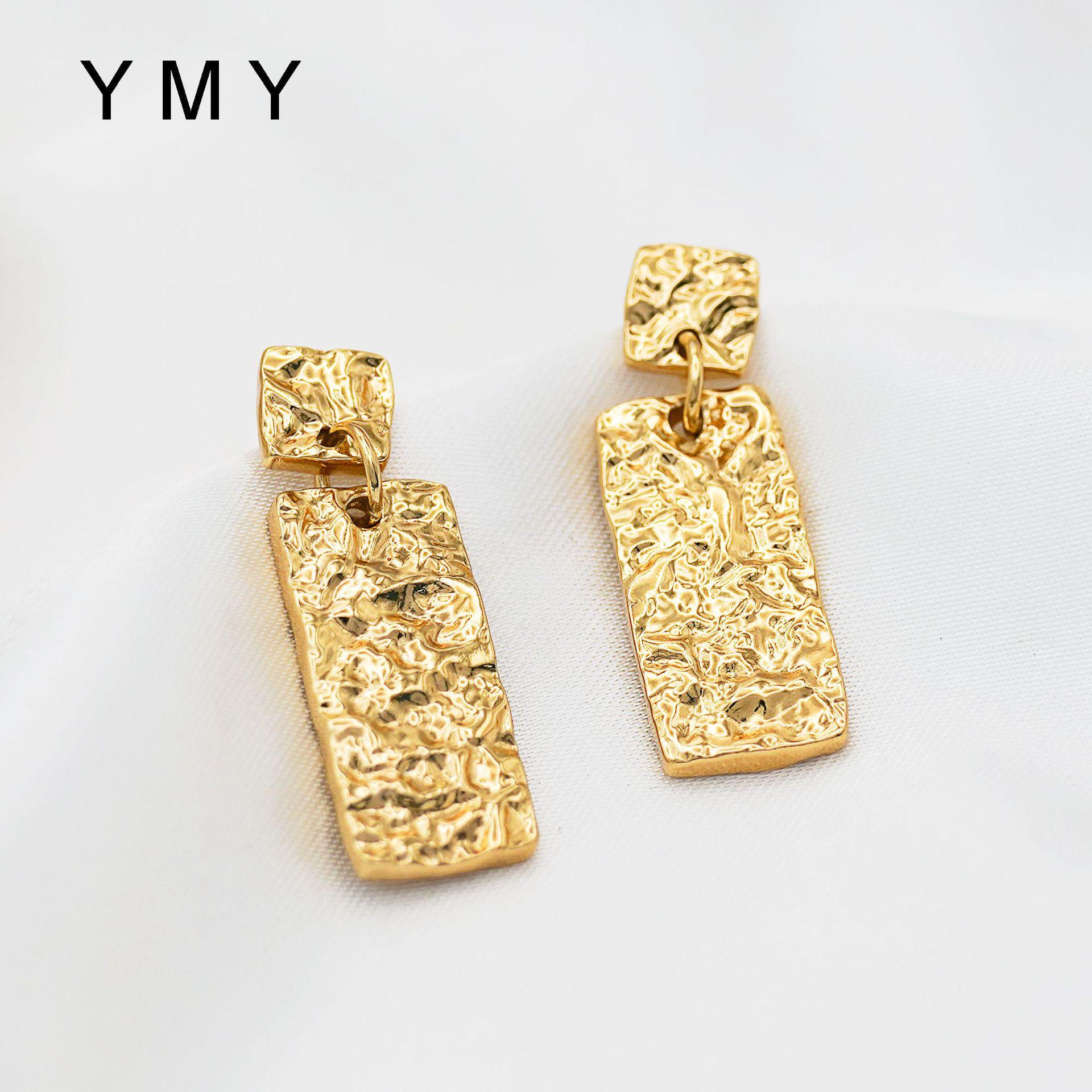 Compra Pendientes de moda transfronterizos de estilo europeo y americano, nuevos pendientes de acero inoxidable chapados en oro de 18 quilates con diseño de textura plisada cuadrada. al por mayor en Joom.pro