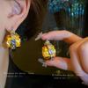 Conjunto de collar y pendientes con diamantes cuadrados, estilo europeo y americano, cadena de clavícula ligera de lujo, personalidad, joyería nueva de alta gama al por mayor.