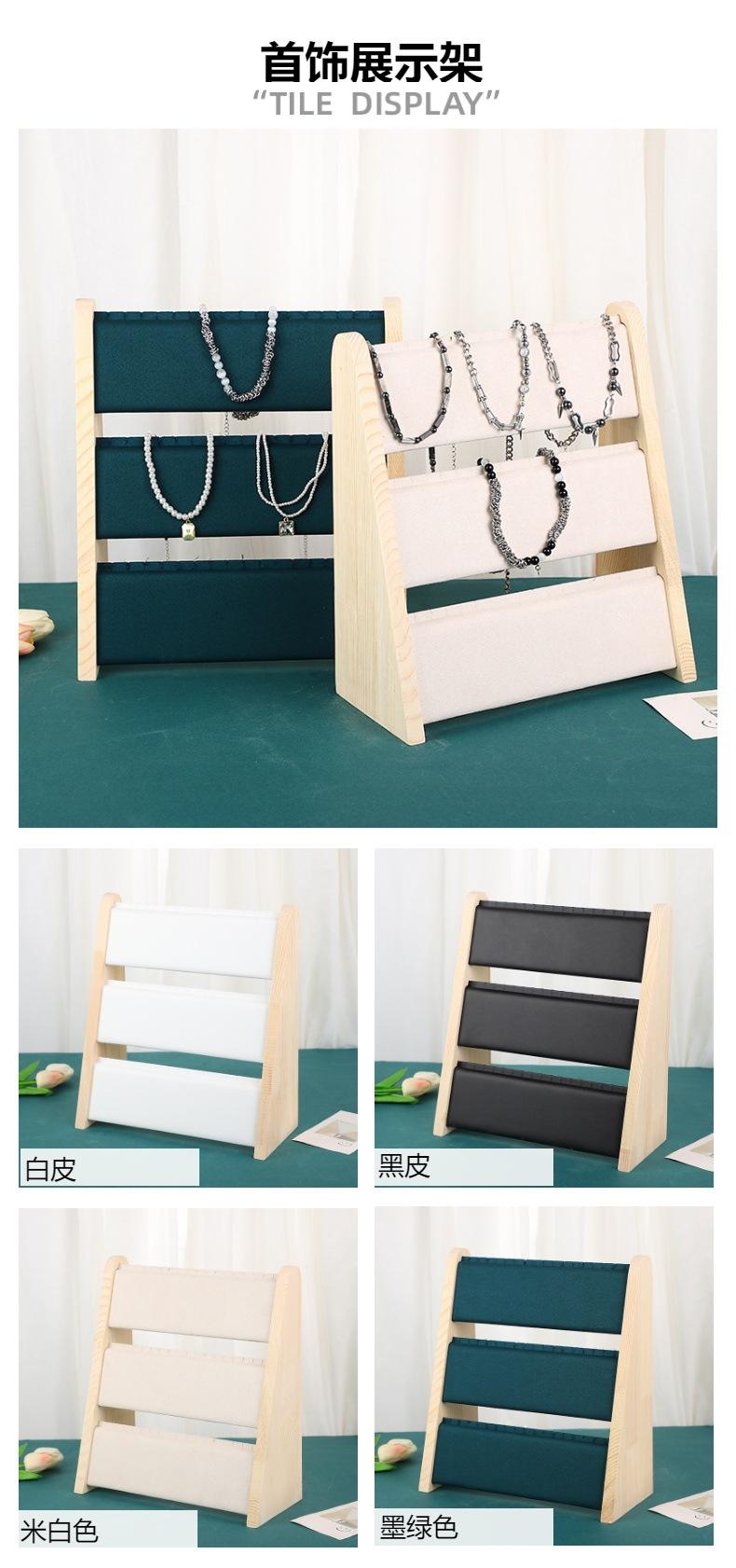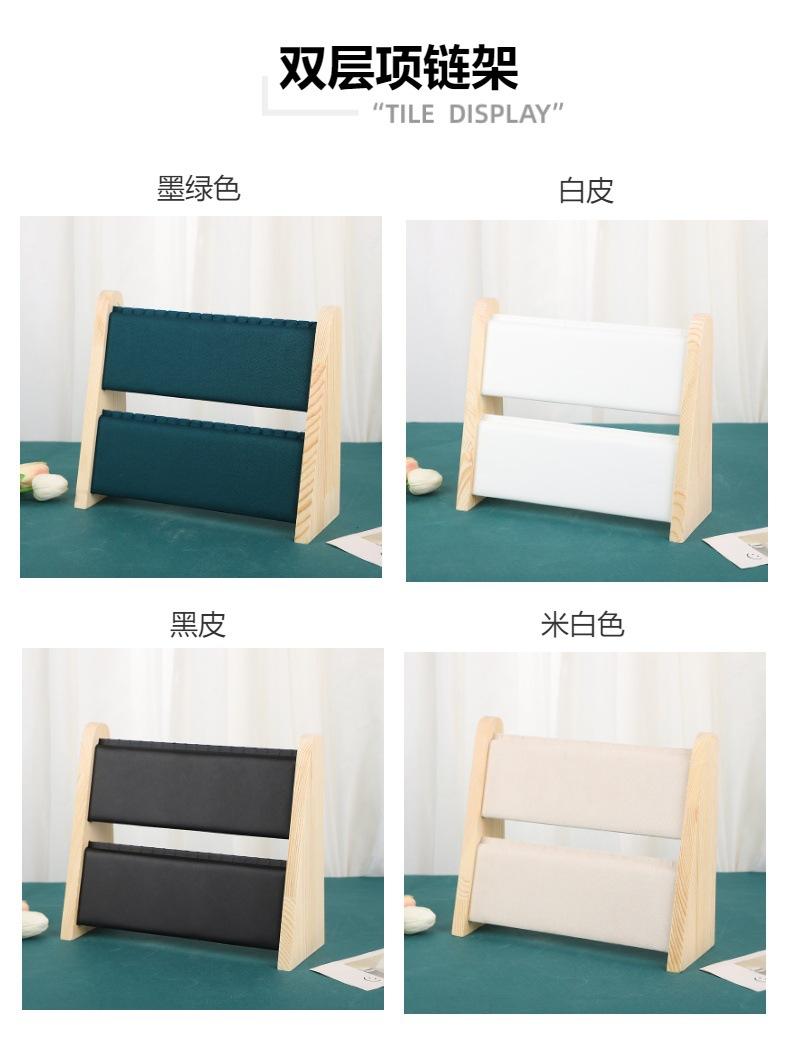 Solid Wood Double-layer White Leather Necklace Rack, Solid wood double-layer necklace rack black leather, Soli...