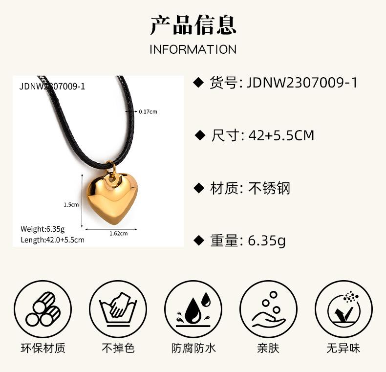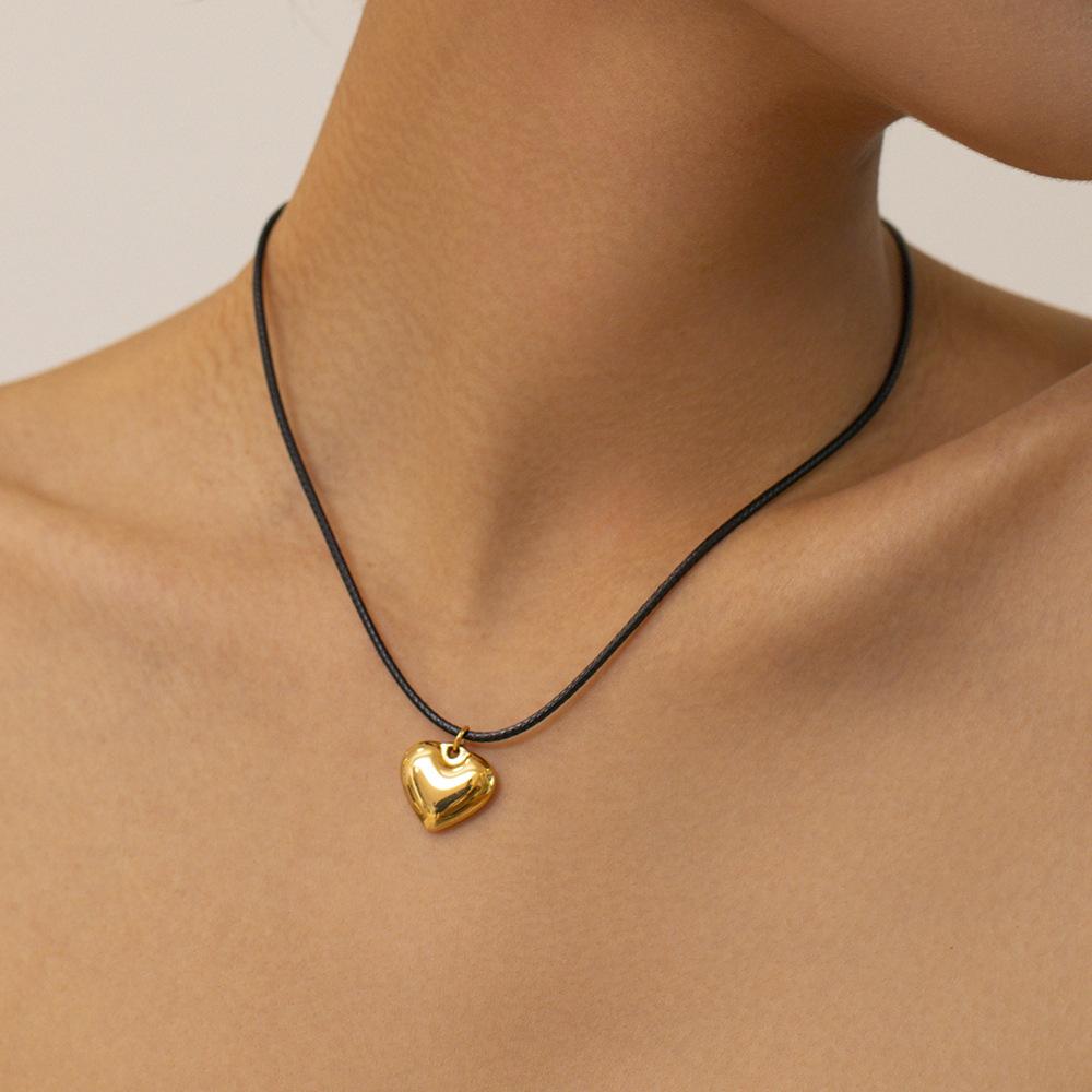 Collar Minimalista de Moda INS Acero Inoxidable Chapado en Oro Collar de Cadena de Cuerda Simple Collar con Colgante de Corazón de Durazno Cadena para Collar Joyería para Mujeres