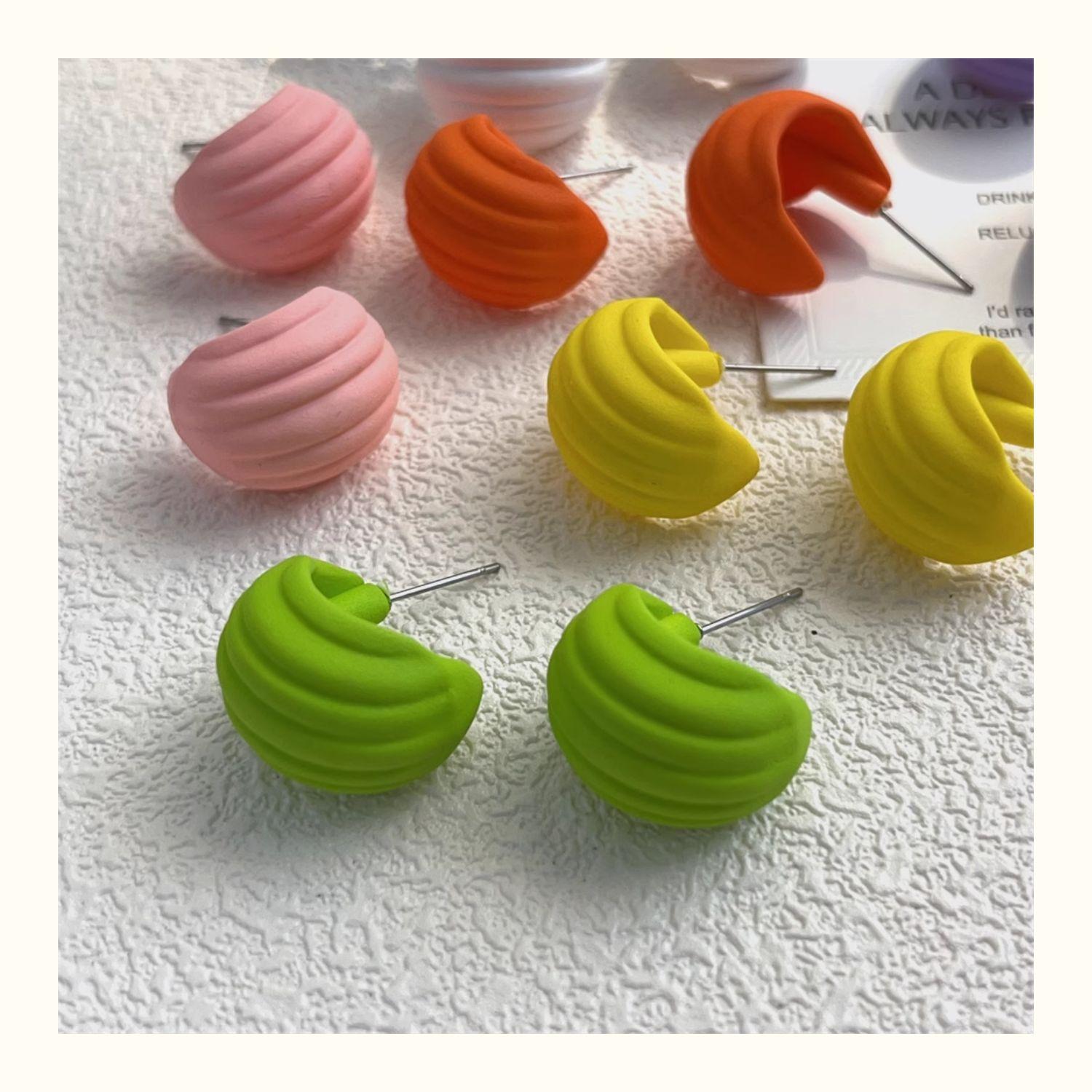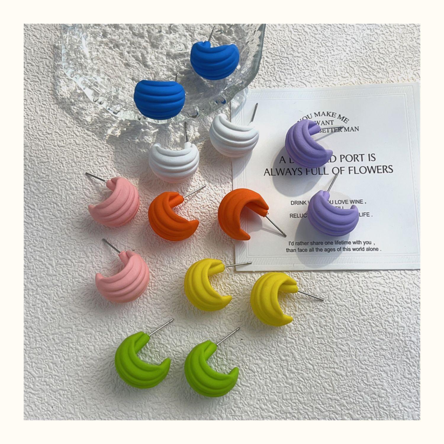 Pendientes de temperamento de dopamina nuevos de primavera y verano para mujer, pendientes de bola curva dulce y colorido, pendientes de aguja de acero con explosiones transfronterizas