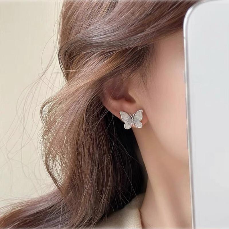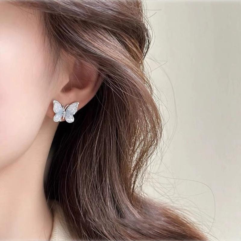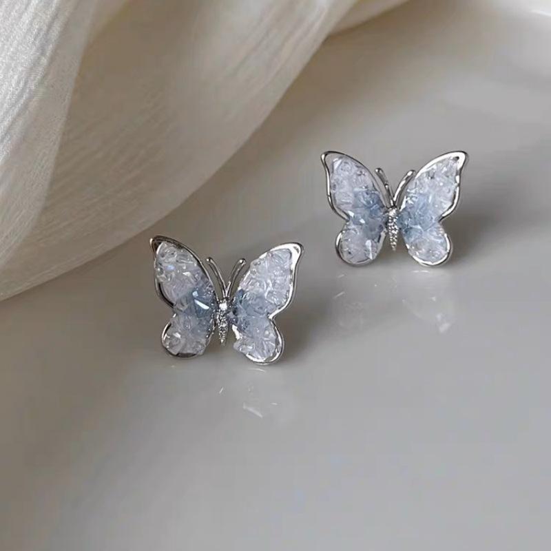 Pendientes de mariposa de cristal con degradado azul Morandi de Niche Design Sense para mujer, estilo retro, distintivos y combinables.