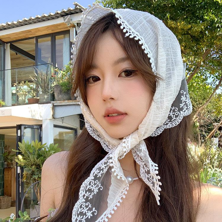Ruth Bufanda Triangular Mismo Estilo Encaje Verano Protector Solar Delgada Transpirable Combinable Moda Pañuelo para la Cabeza Diadema Pastoral Bufanda de Seda