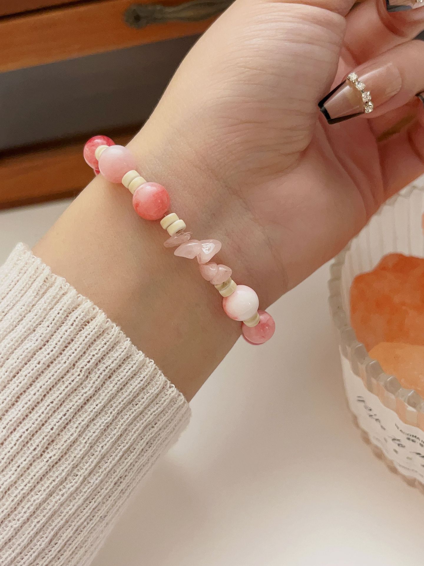 Pulsera de cuentas de piedra Shoushan colorida con nombre de flor inaudito, estilo chino elegante y dulce de verano para mujer, pulsera de piedra natural para mejores amigas.