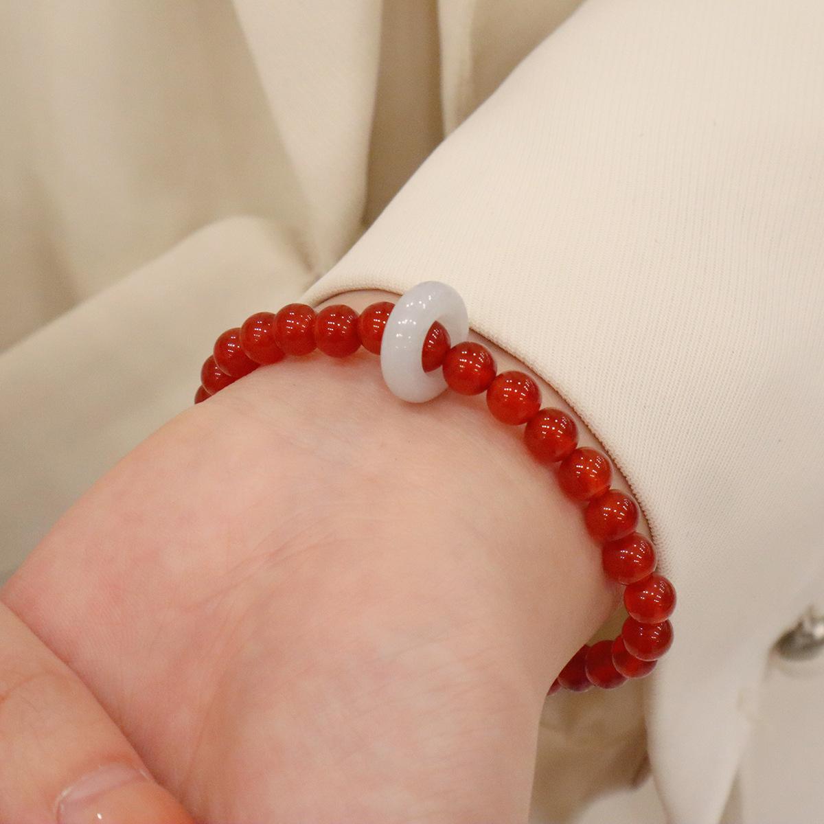 Natural 6MM red agate jade running ring, Natural 8MM red agate Hetian jade good luck running ring