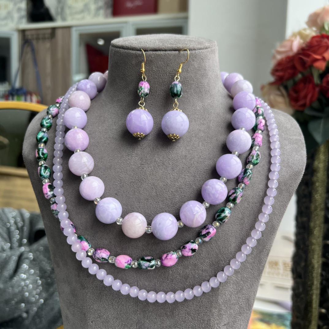 Mi Nan Collar de Tres Capas con Gancho para la Oreja Serie Púrpura Antiguo Medio Antiguo Vintage Lujo Ligero Simple Combinable