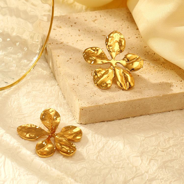 Five-leaf flower stud earrings gold, Five-leaf flower stud earrings in steel