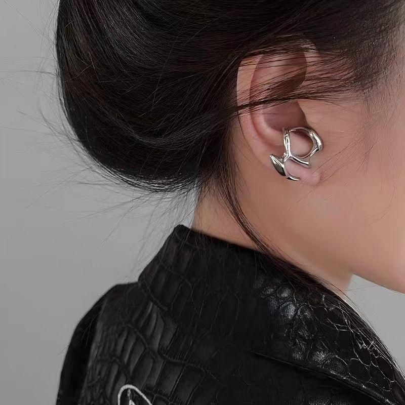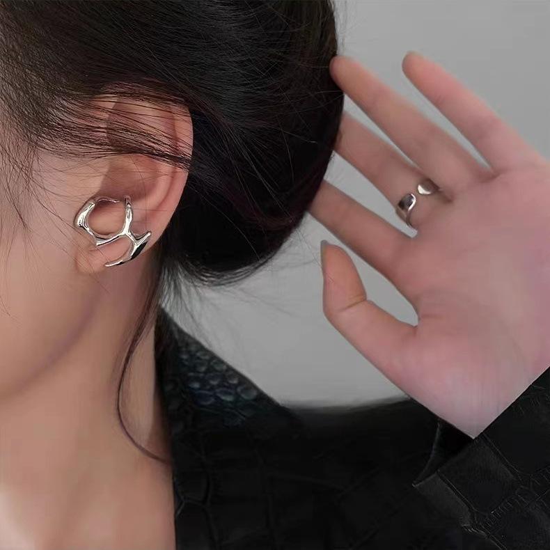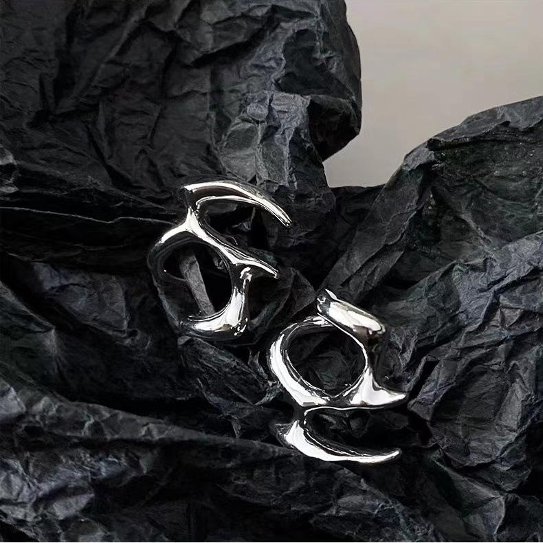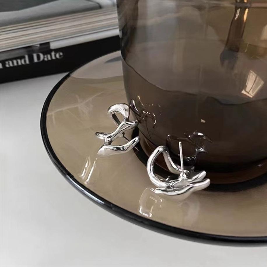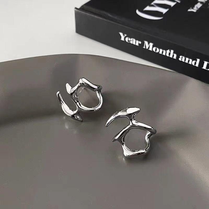 Pendientes huecos de metal líquido irregulares, pendientes de diseño de nicho femenino, pendientes de estilo frío.