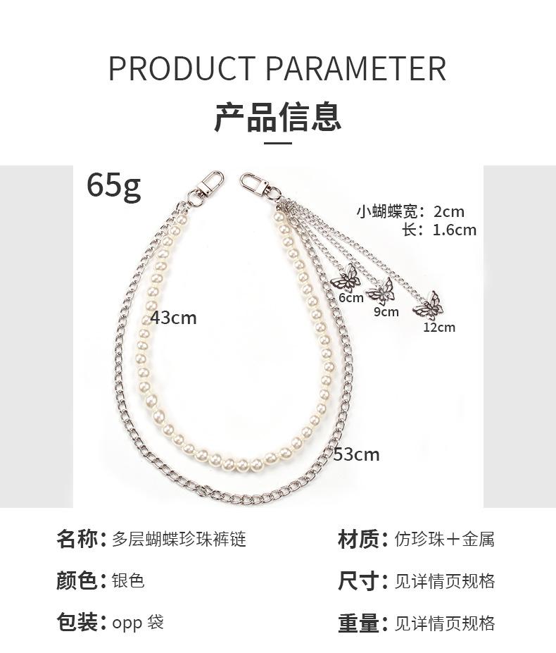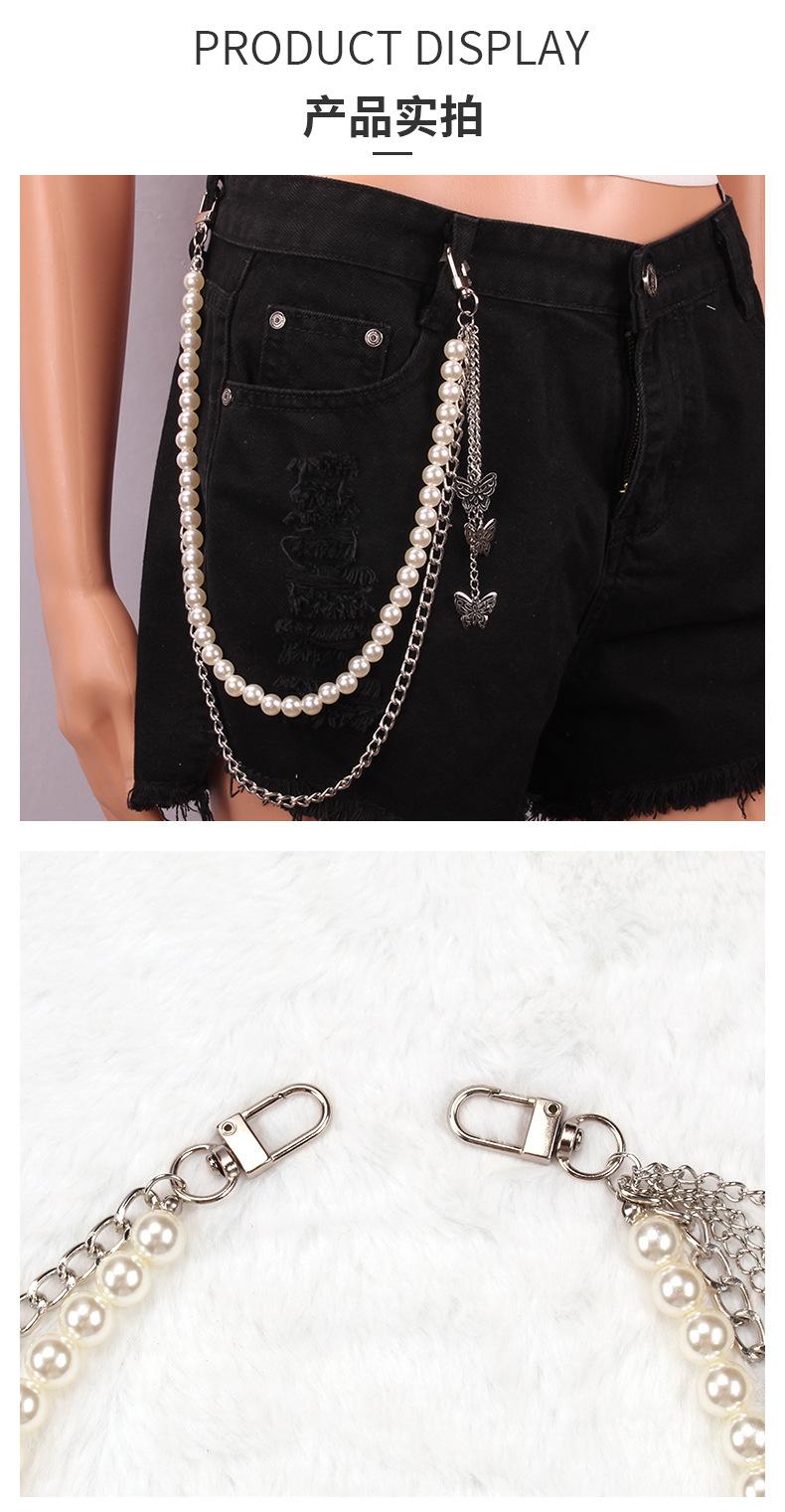Compra Joyería transfronteriza europea y americana moda diseño simple cadena de pantalón multicapa de mariposa estilo frío cadena gruesa cadena de pantalón de perlas al por mayor en Joom.pro