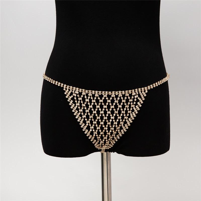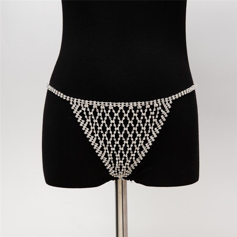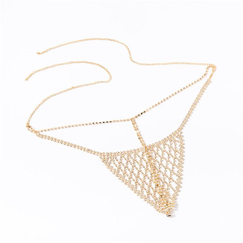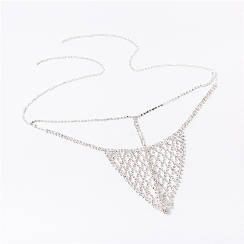 Explosiones transfronterizas, ropa europea y americana, chicas calientes, diamantes de imitación, bikini sexy, tanga, cadena corporal, ropa interior de diamantes de metal para mujeres