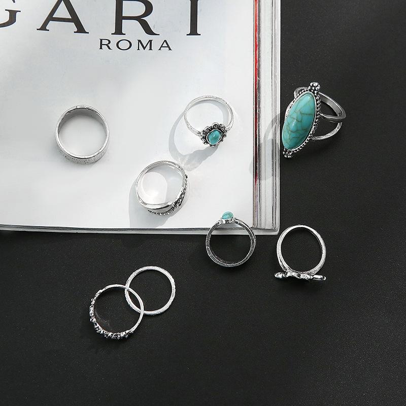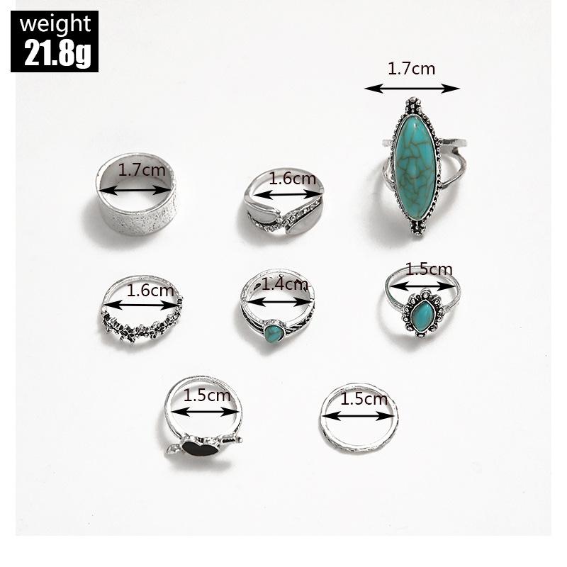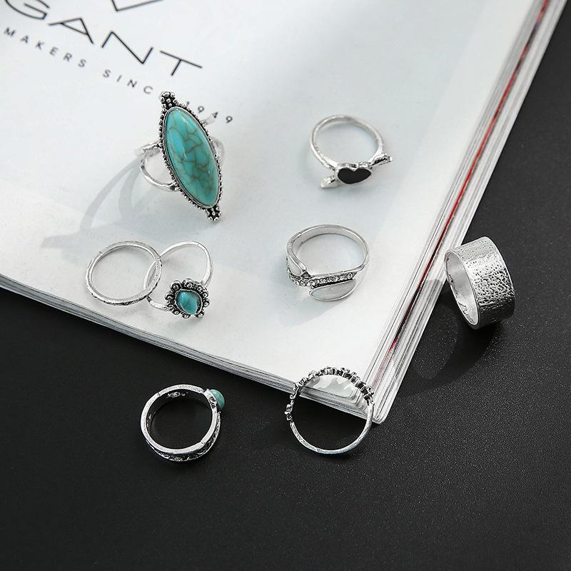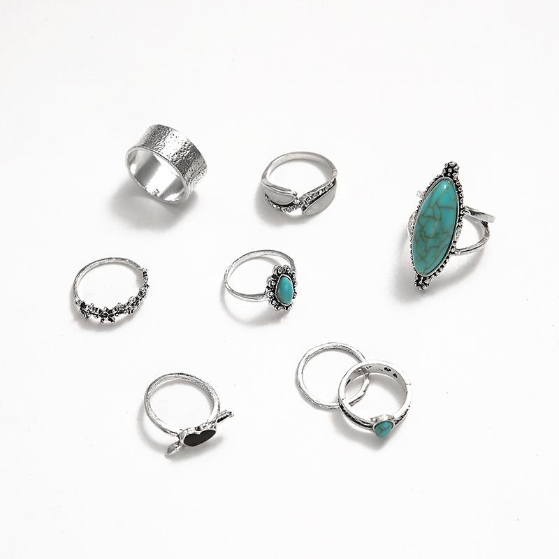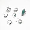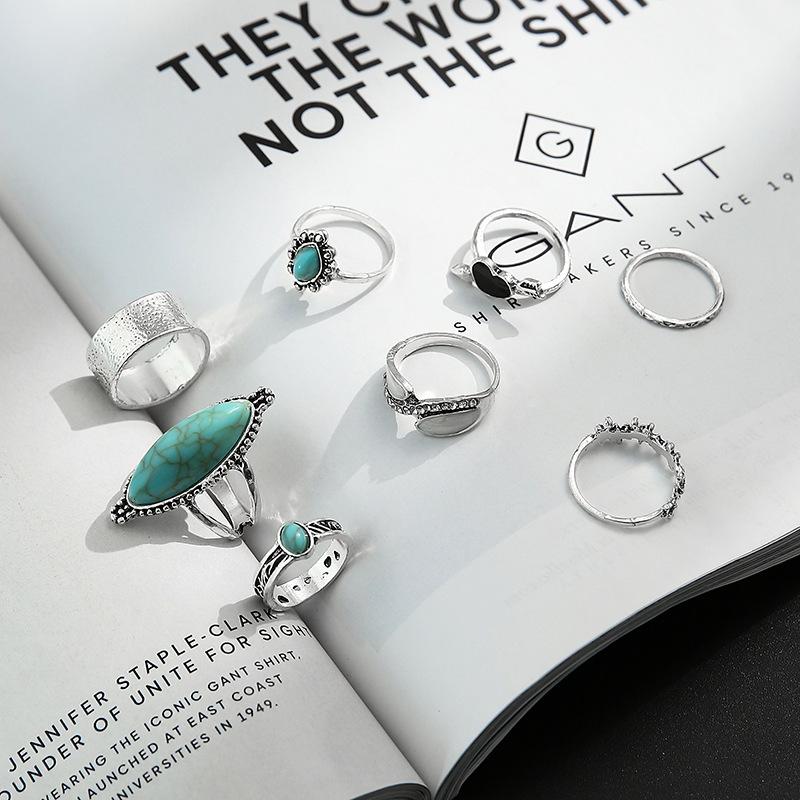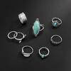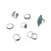 Comercio electrónico transfronterizo 2023, anillo de combinación de 8 piezas turquesa largo con amor negro para mujer, retro, al por mayor