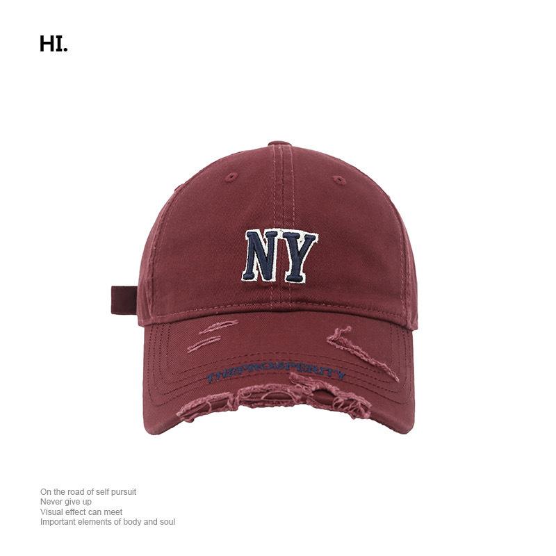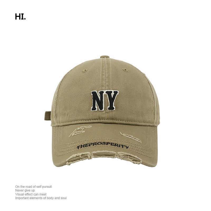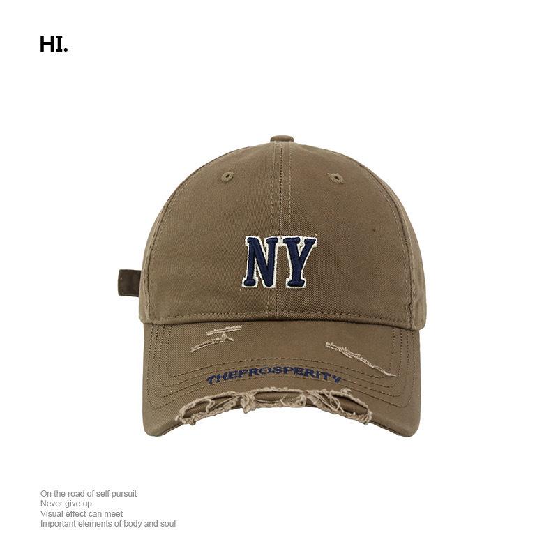 Black n hole y baseball cap, Off-white actual beige n ripped y baseball cap, Khaki n hole y baseball cap, Brow...