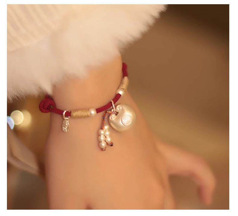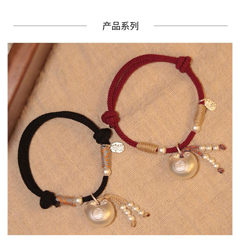 Pulsera Tejida a Mano de Plata 925 Xilofu Estrella Plata Cuerda Roja para Hombres y Mujeres Nuevo Estilo Chino Pulsera Tejida con Cuerda