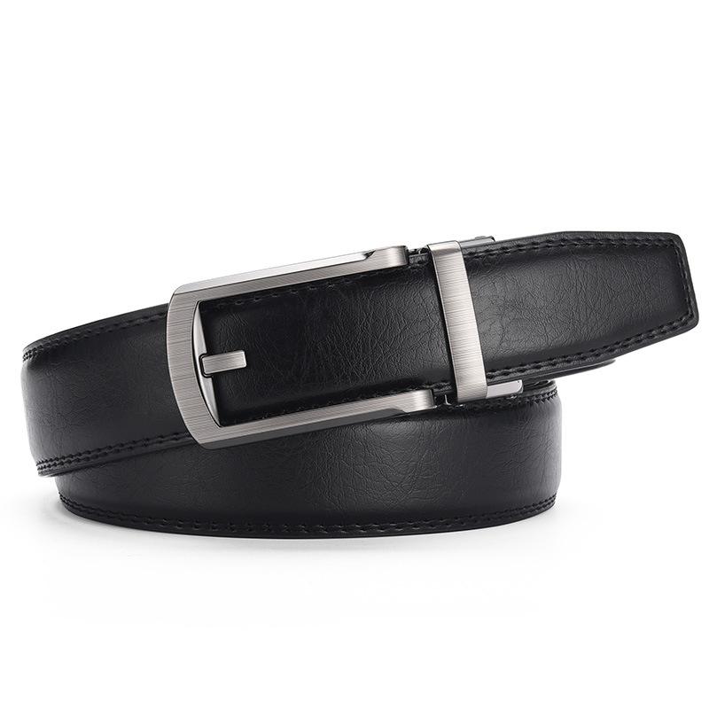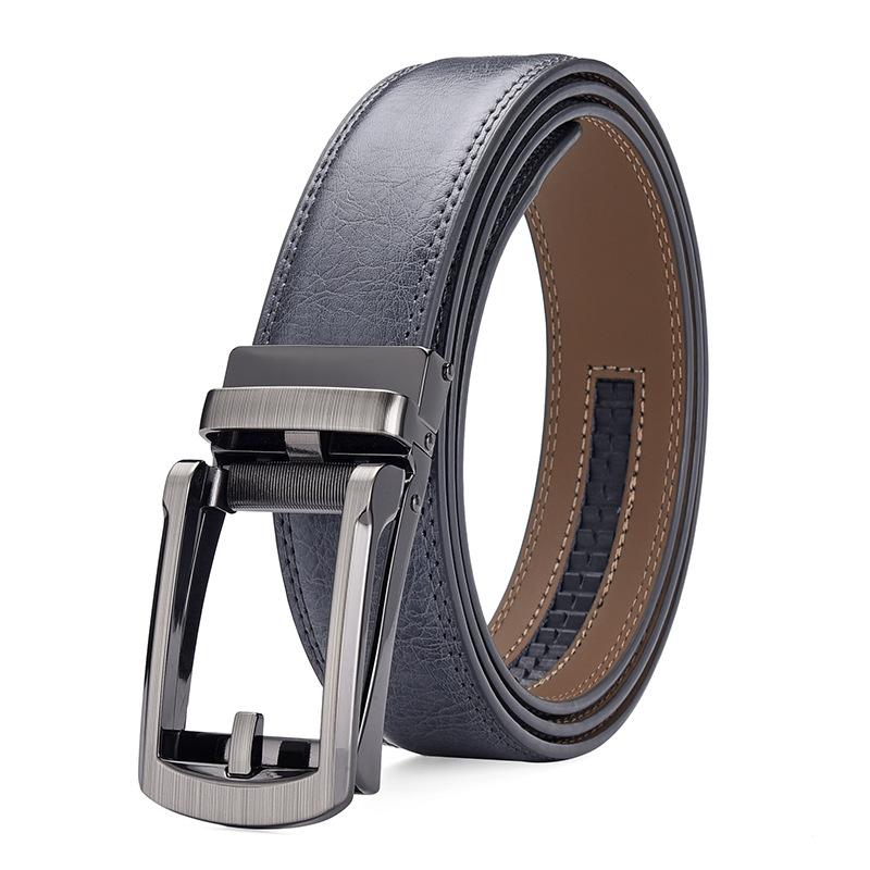 Compra Cinturón de hombre con hebilla automática, de cuero azul y gris, 3,5 cm, informal, para negocios, comercio exterior, gran oferta al por mayor en Joom.pro