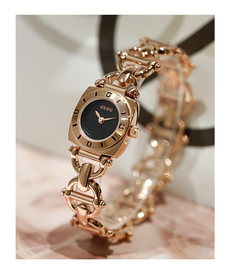 Compra GUOU GUOU 2023 nuevo reloj cuadrado pequeño de moda de temperamento simple para mujer, reloj de pulsera de nicho con cinturón de acero de lujo ligero para mujer al por mayor en Joom.pro