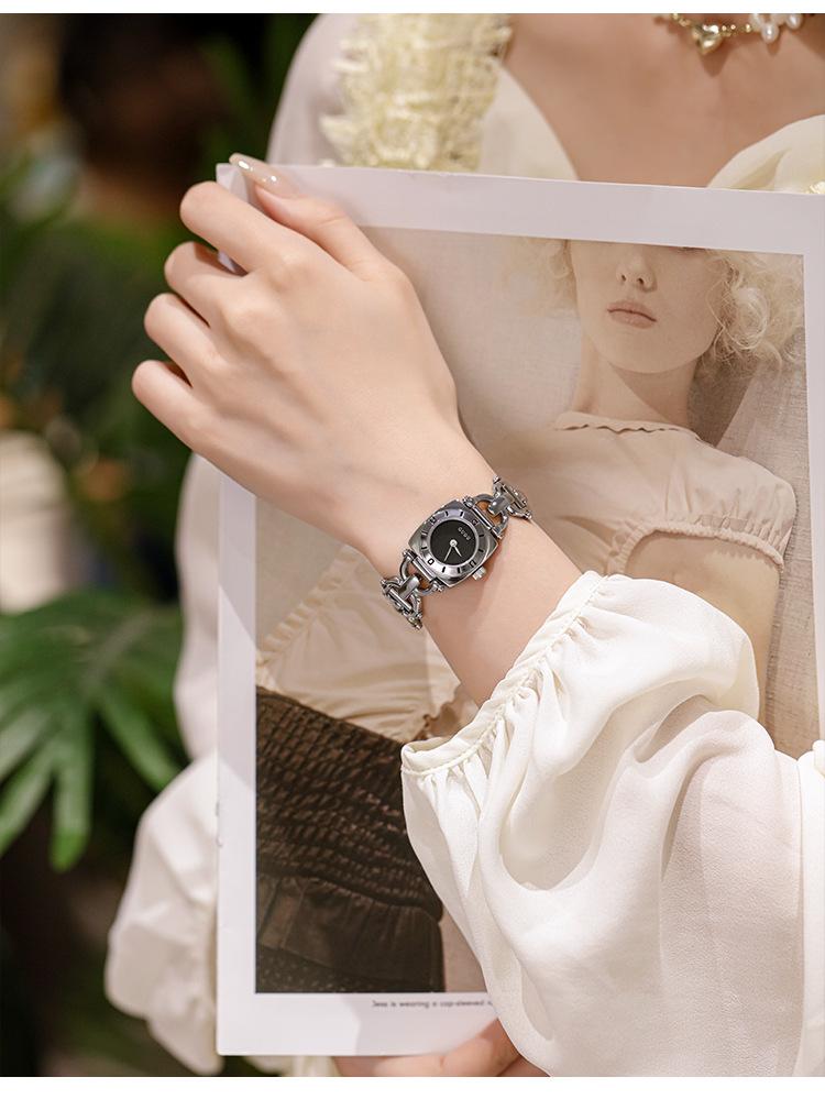 GUOU GUOU 2023 nuevo reloj cuadrado pequeño de moda de temperamento simple para mujer, reloj de pulsera de nicho con cinturón de acero de lujo ligero para mujer