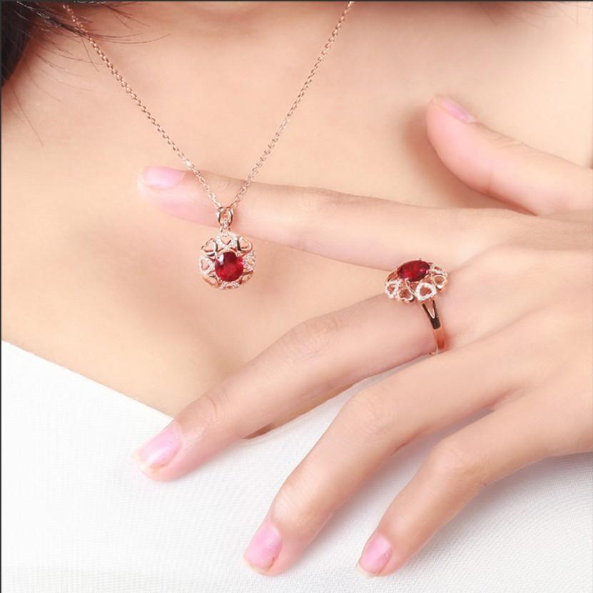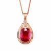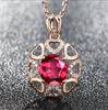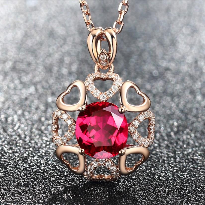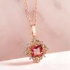 Collar con colgante de flor de diamante y rubí europeo y americano en forma de corazón, chapado en oro rosa de 18 quilates.