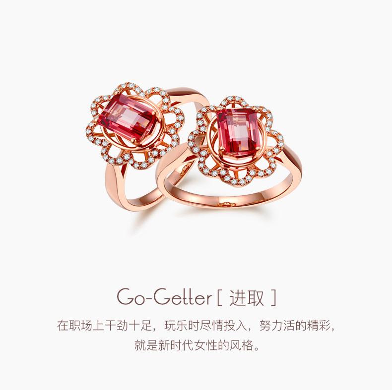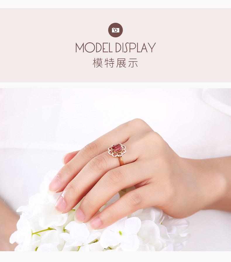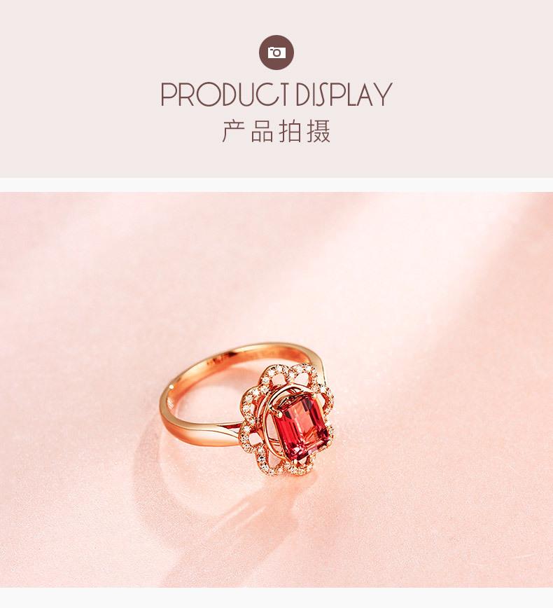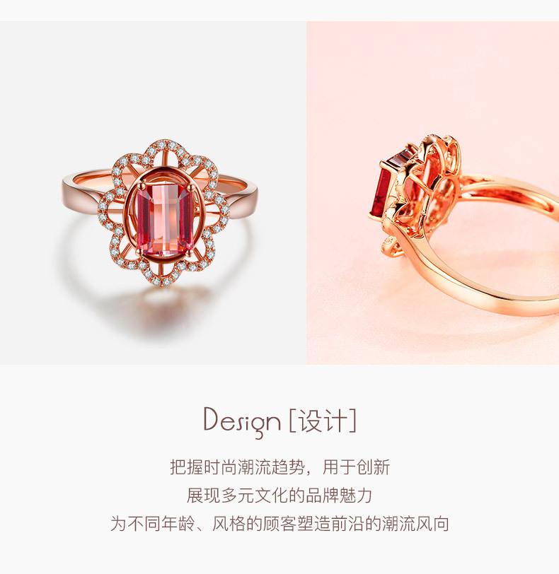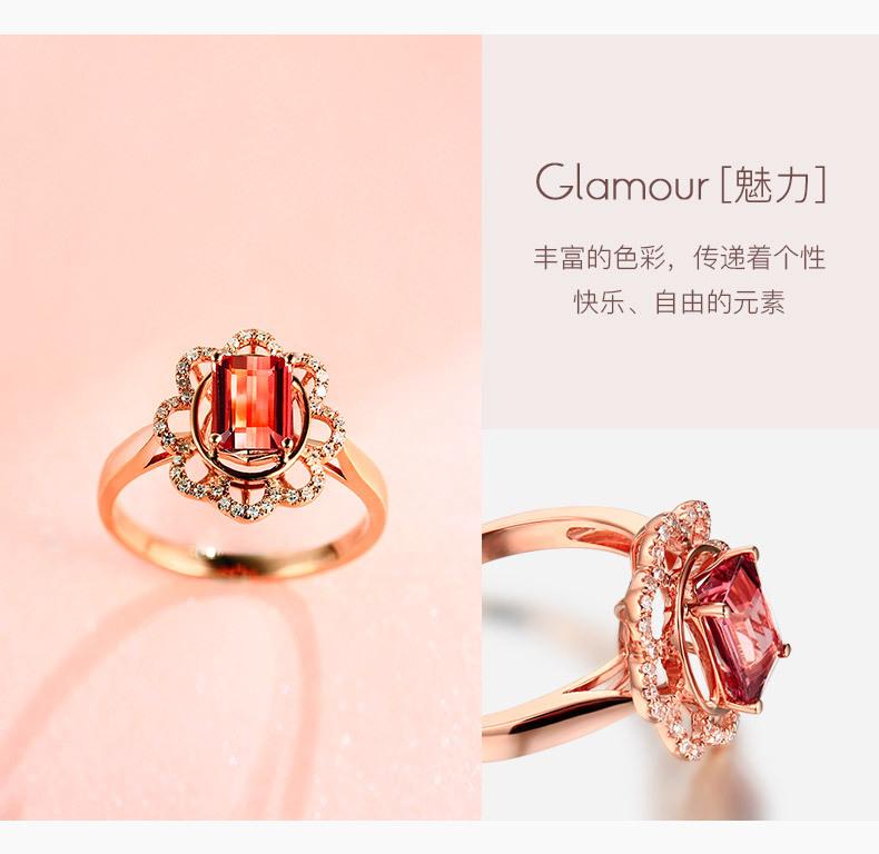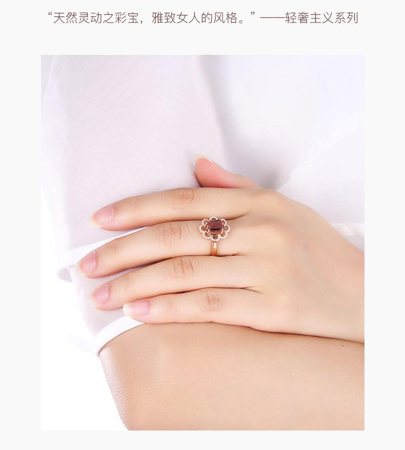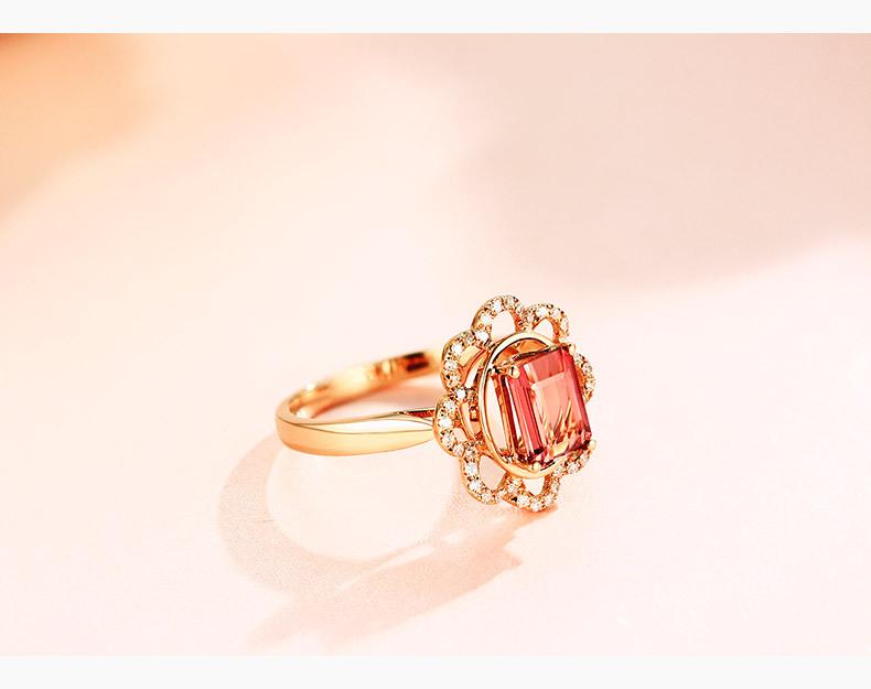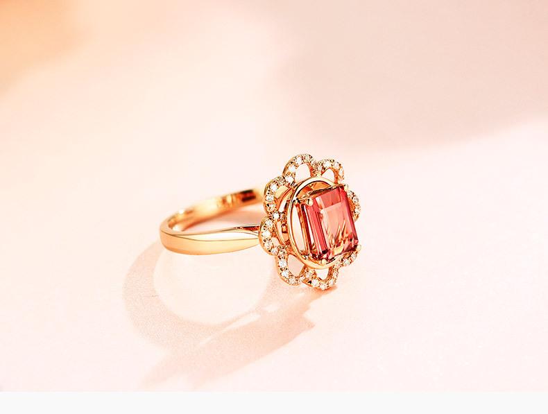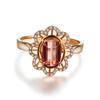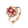 Anillo de boda de oro de 18 quilates con turmalina roja natural, color oro rosa, joya de diamantes.
