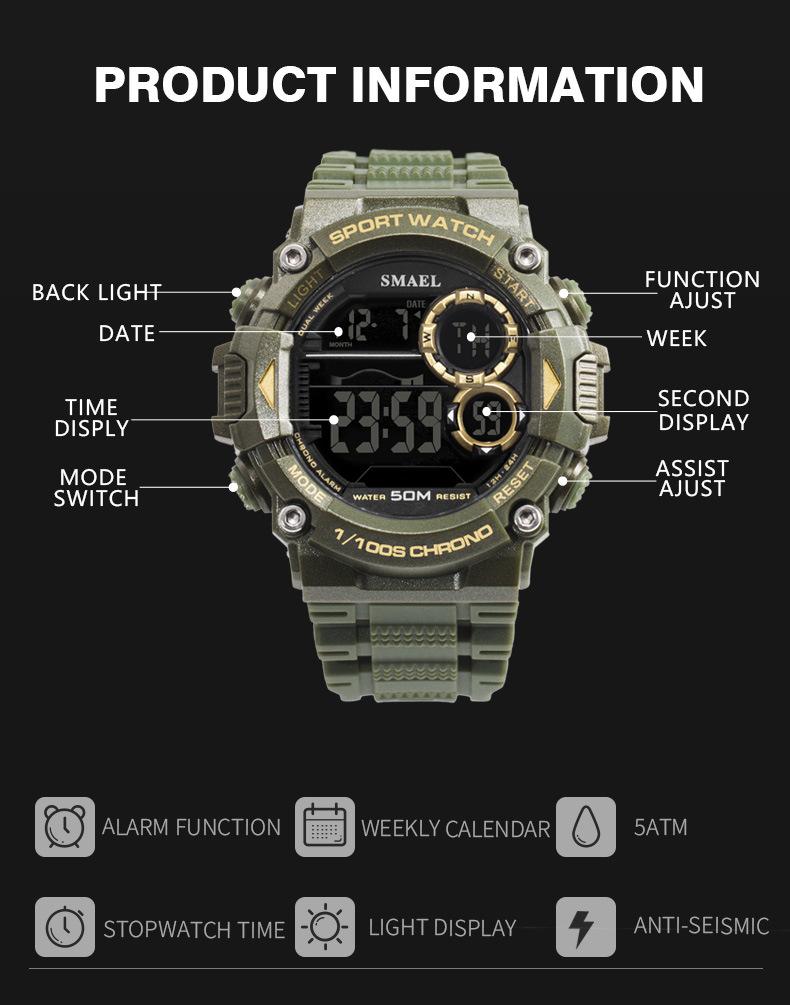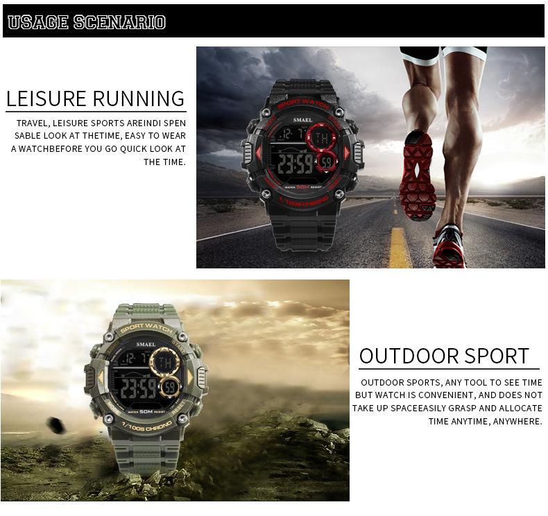 Reloj electrónico digital SMAEL de una sola pantalla para estudiantes, deportivo al aire libre, resistente al agua, luminoso, gran oferta transfronteriza.