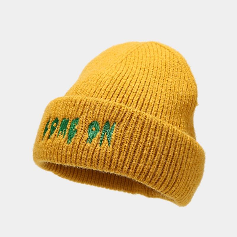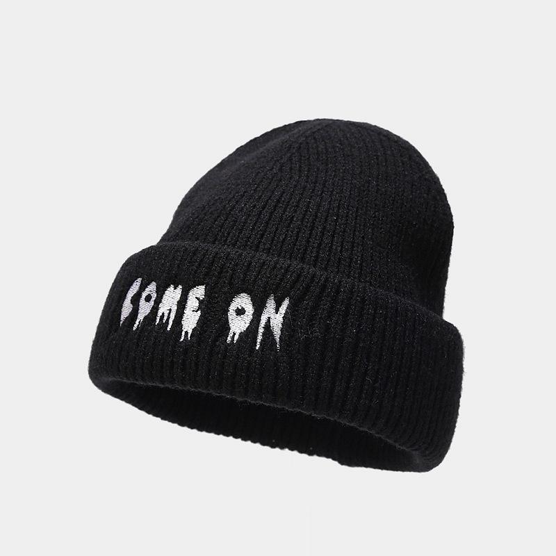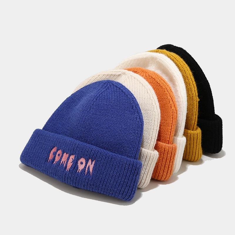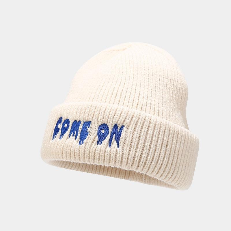 Gorro de otoño e invierno con letras coreanas bordadas, tejido sencillo, cálido, de lana, para exteriores, con protección para las orejas y para el frío.