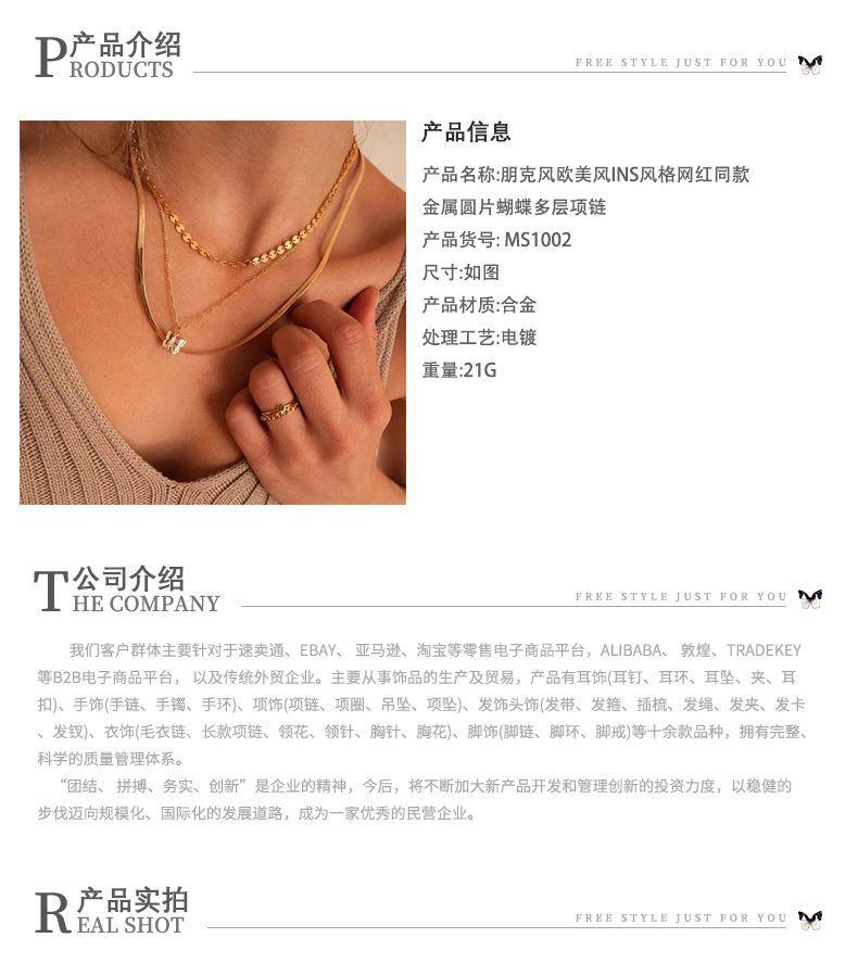 Collar Europeo y Americano Transfronterizo Nuevo de Aleación Multicapa para Mujer, Retro Personalizado Estilo Simple Cadena con Colgante de Mariposa Cadena para Clavícula