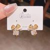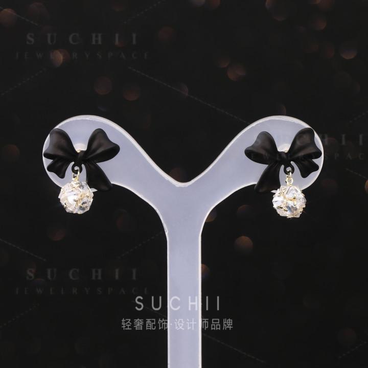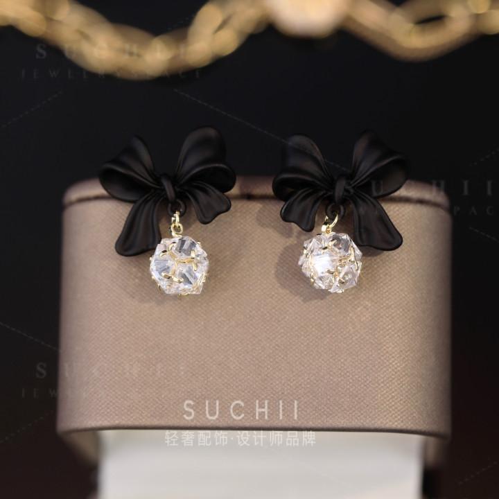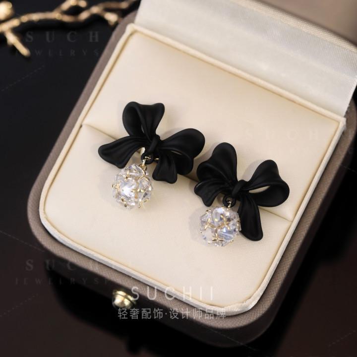 Pendientes de bola de circonita con lazo negro de alta gama con diseño de nicho, pendientes de moda de estilo frío de lujo ligero y temperamento.