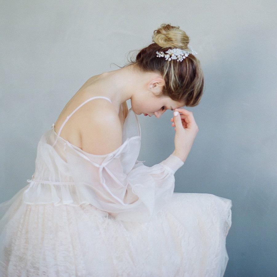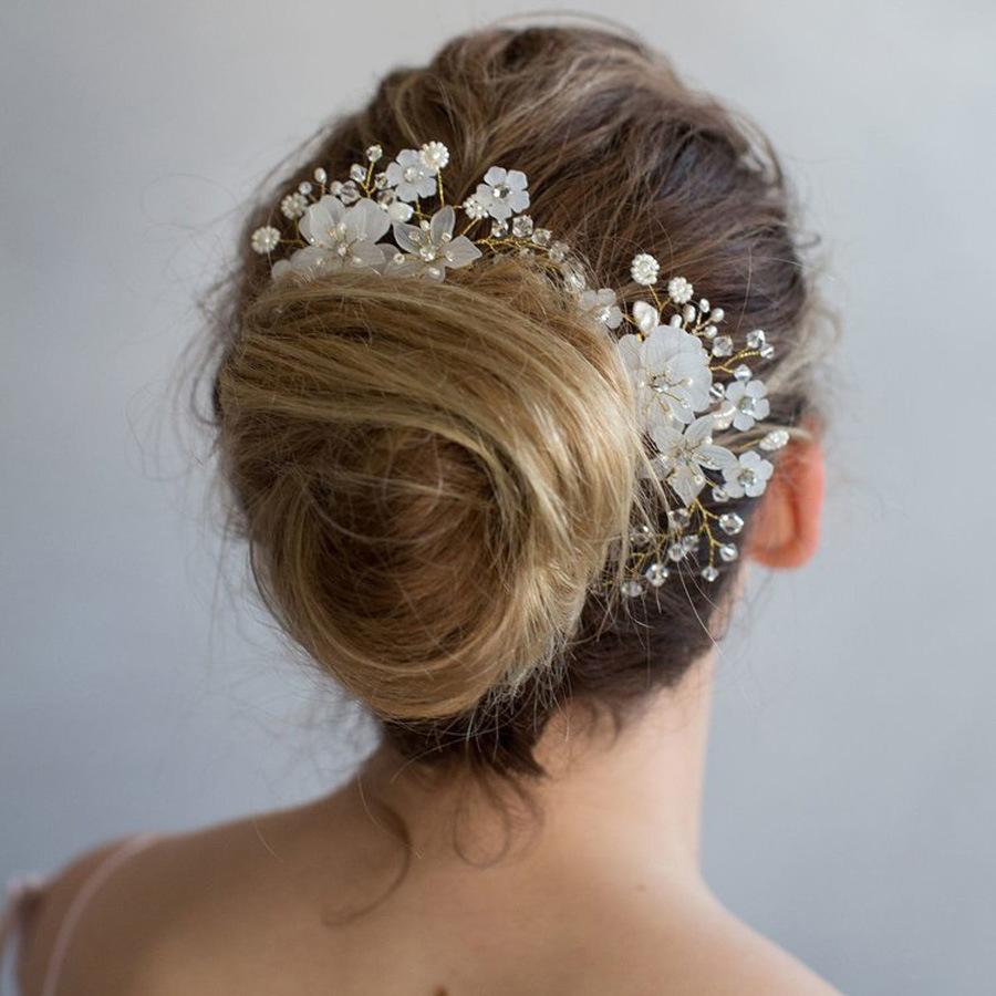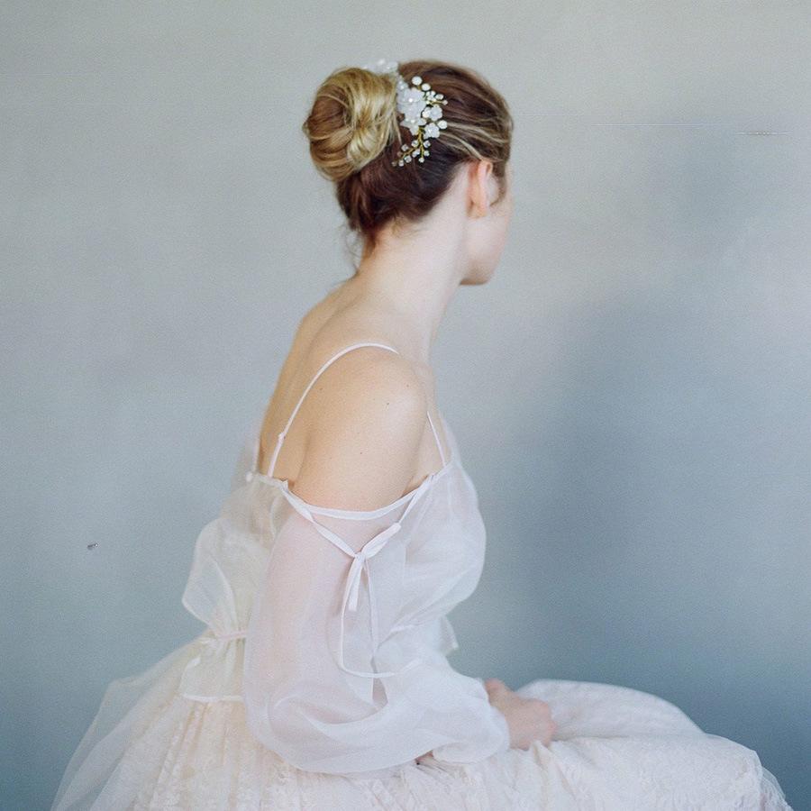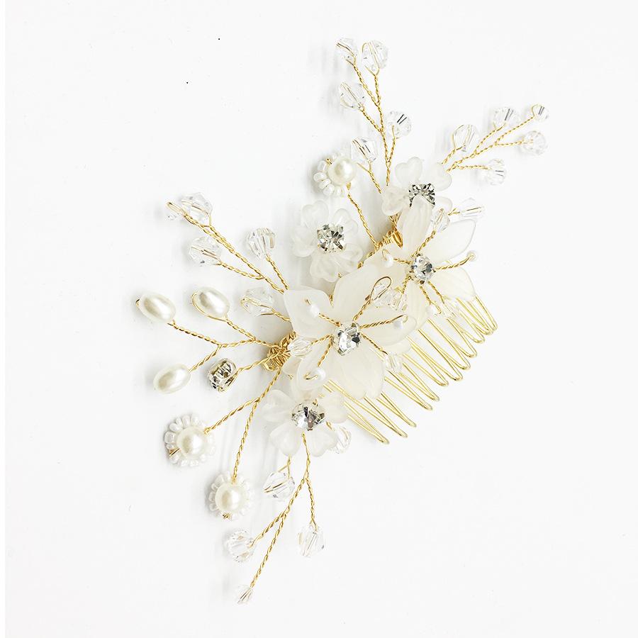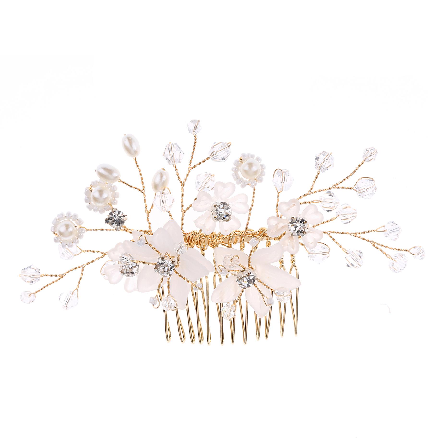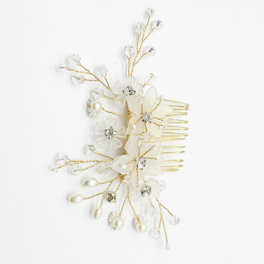 Peineta nupcial hecha a mano con cuentas retorcidas de cristal y perlas para boda transfronteriza europea y americana.