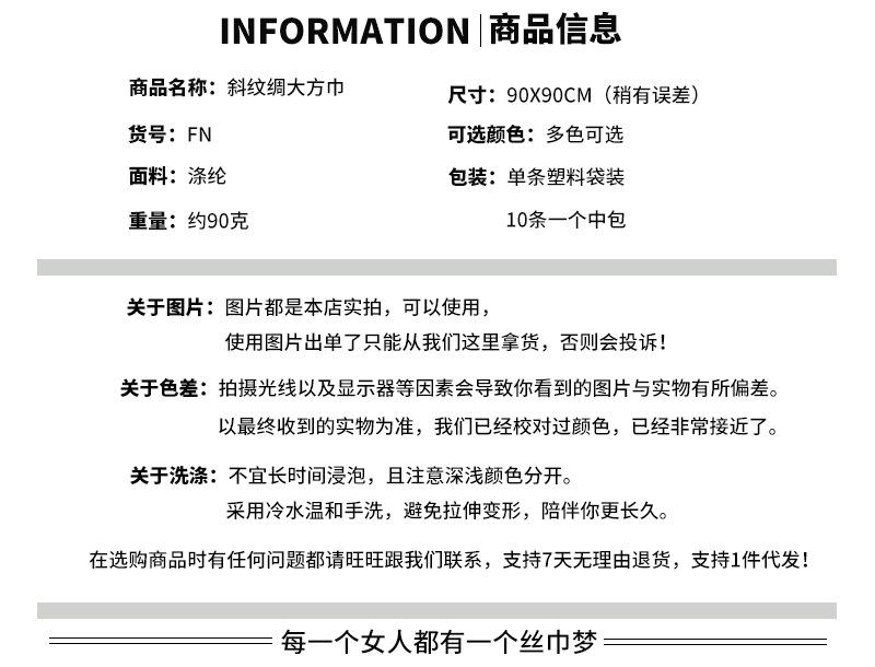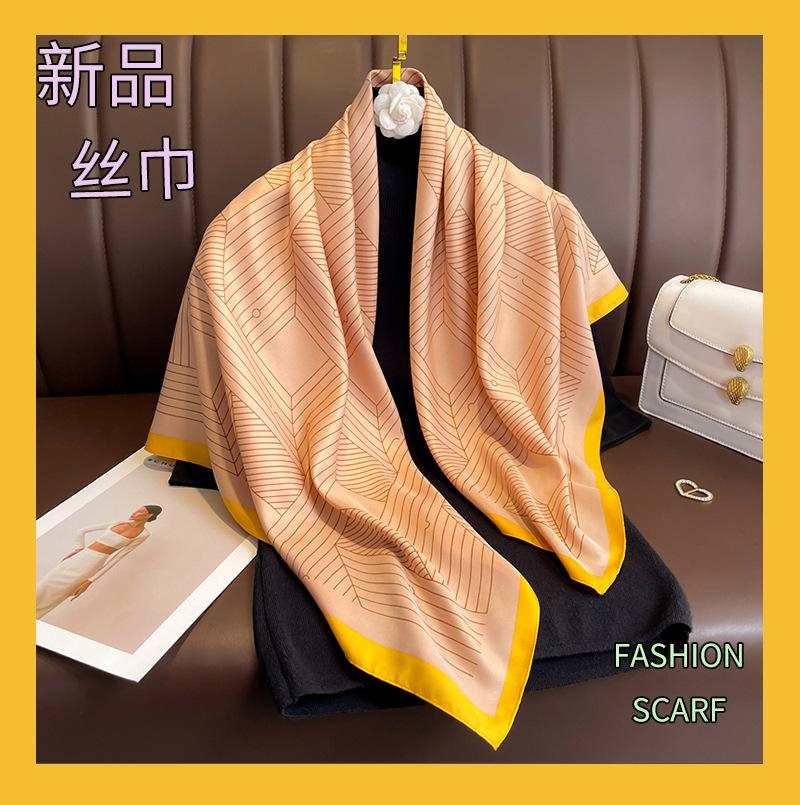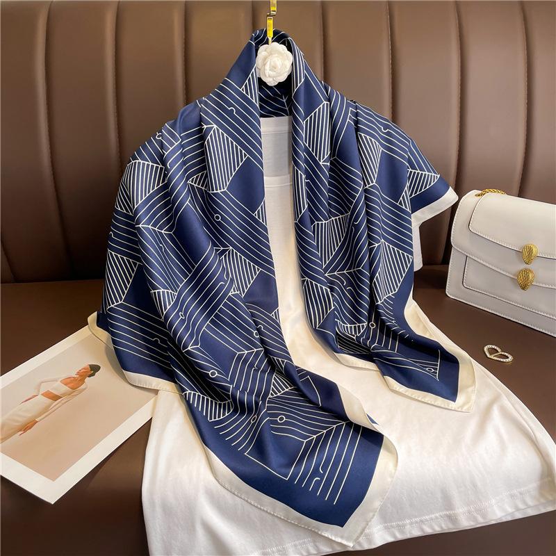Bufanda nueva de primavera y verano de 90 cm, bufanda cuadrada grande de sarga, bufanda geométrica sencilla, chal elegante para mujer que combina con todo.