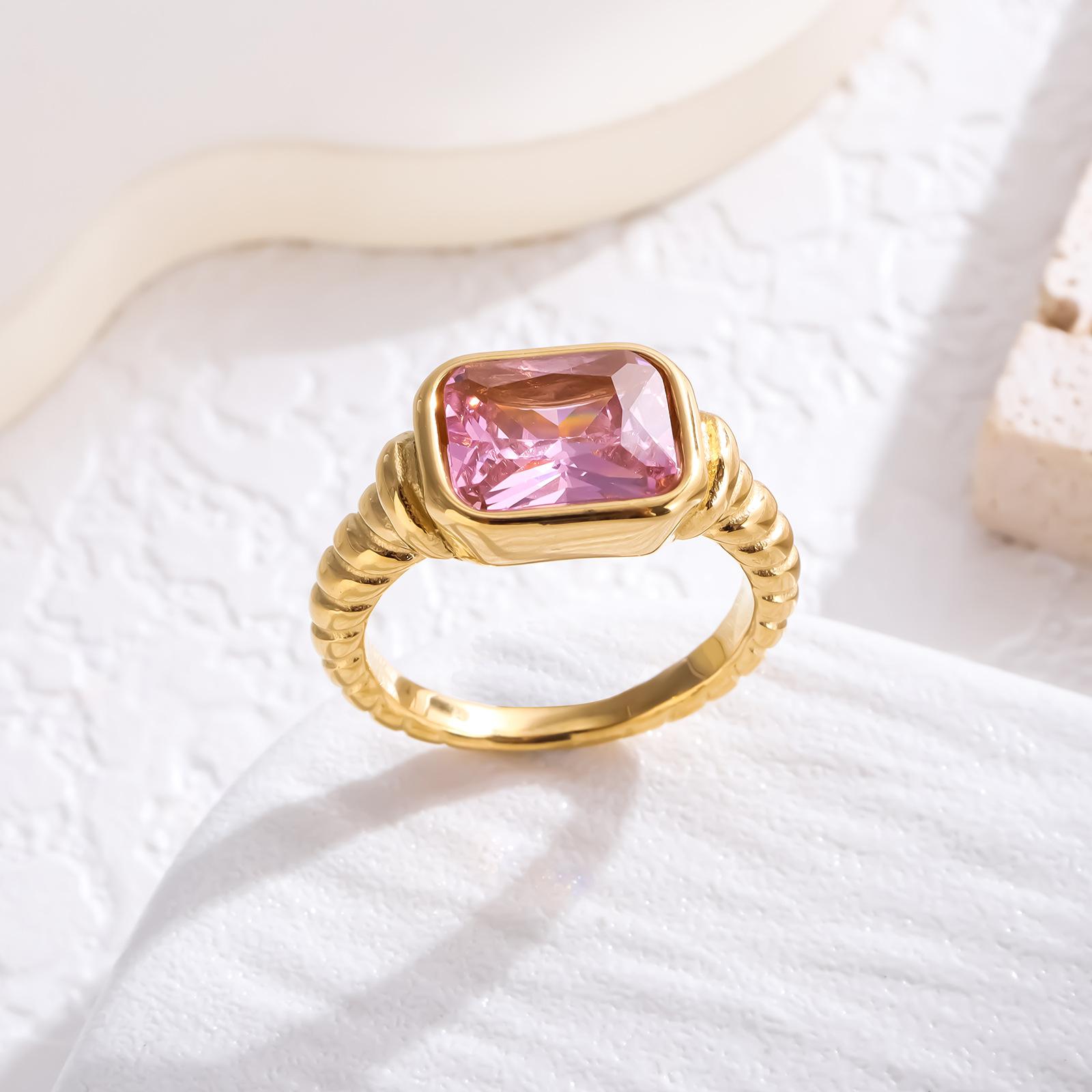 Anillo de circonita de moda europea y americana Long Rui, chapado en oro de 18 quilates, acero inoxidable INS, anillo rojo de Internet, joyería para mujer