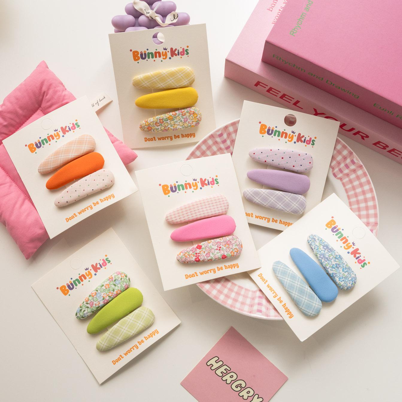 Pinza para el pelo de tela con diseño de esponja floral vintage para niña, pinza para el pelo para niña pequeña, pinza lateral para cola de caballo, 3 unidades al por mayor